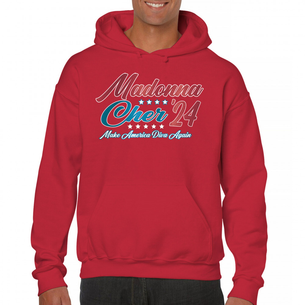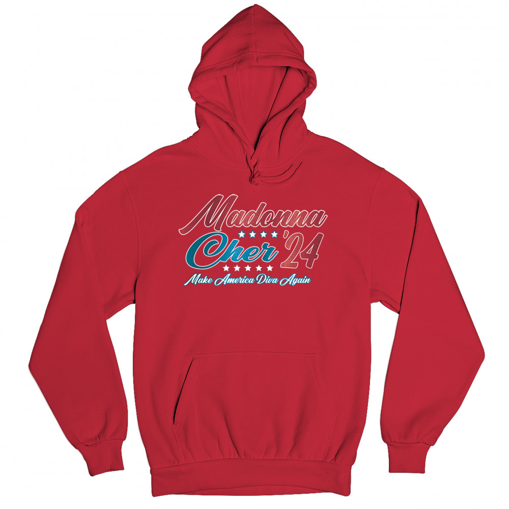 MADONNA CHER 2024 MAKE AMERICA DIVA AGAIN sweatshirt pop culture icon hoodie red