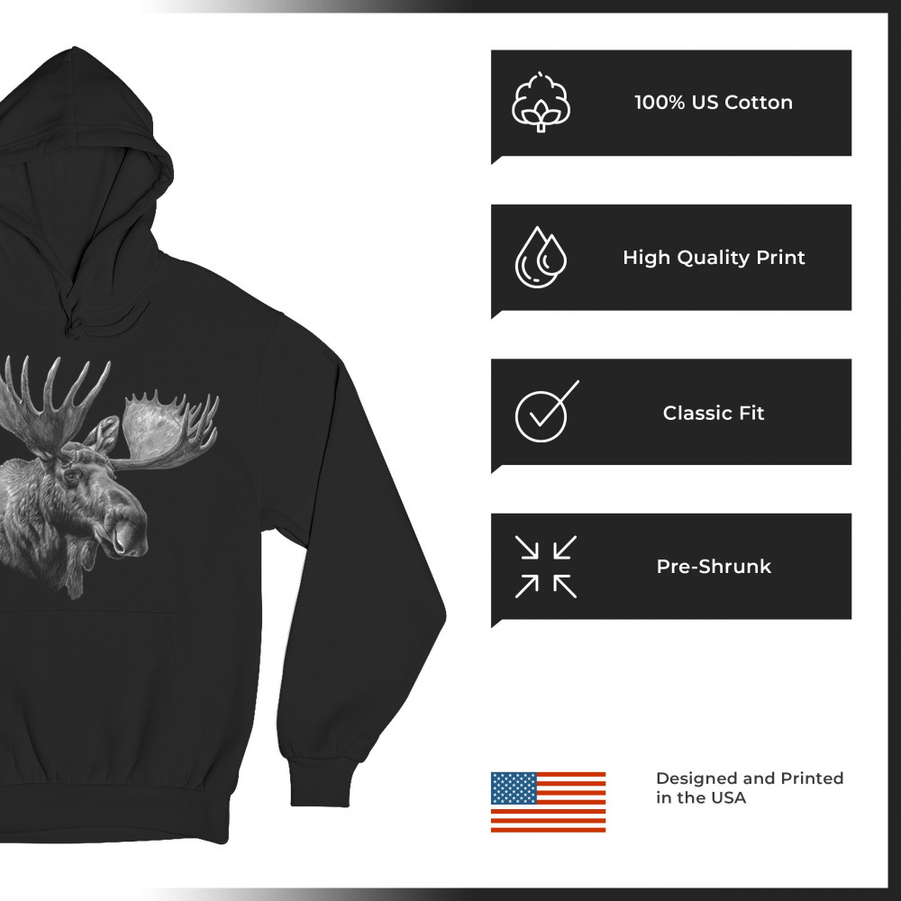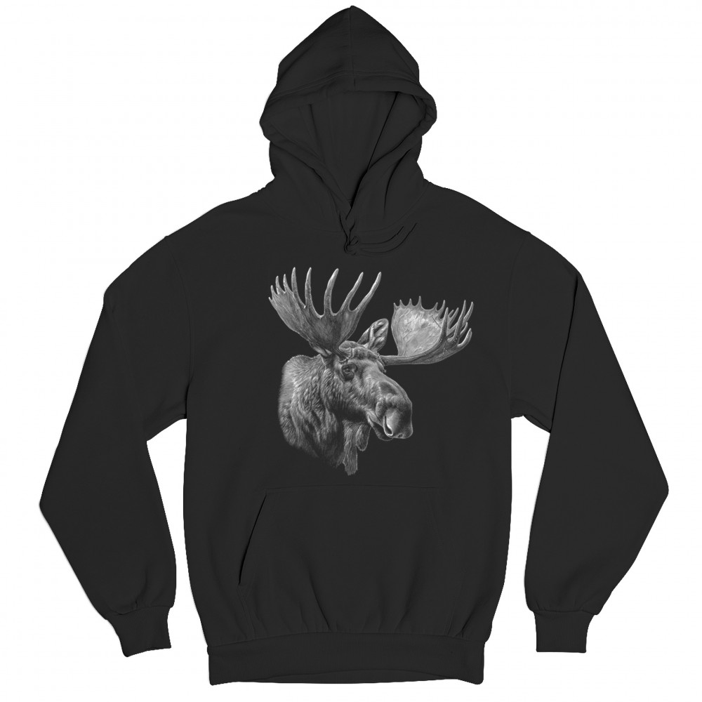 MAJESTIC MOOSE PORTRAIT sweatshirt wildlife nature northwoods animal hoodie black