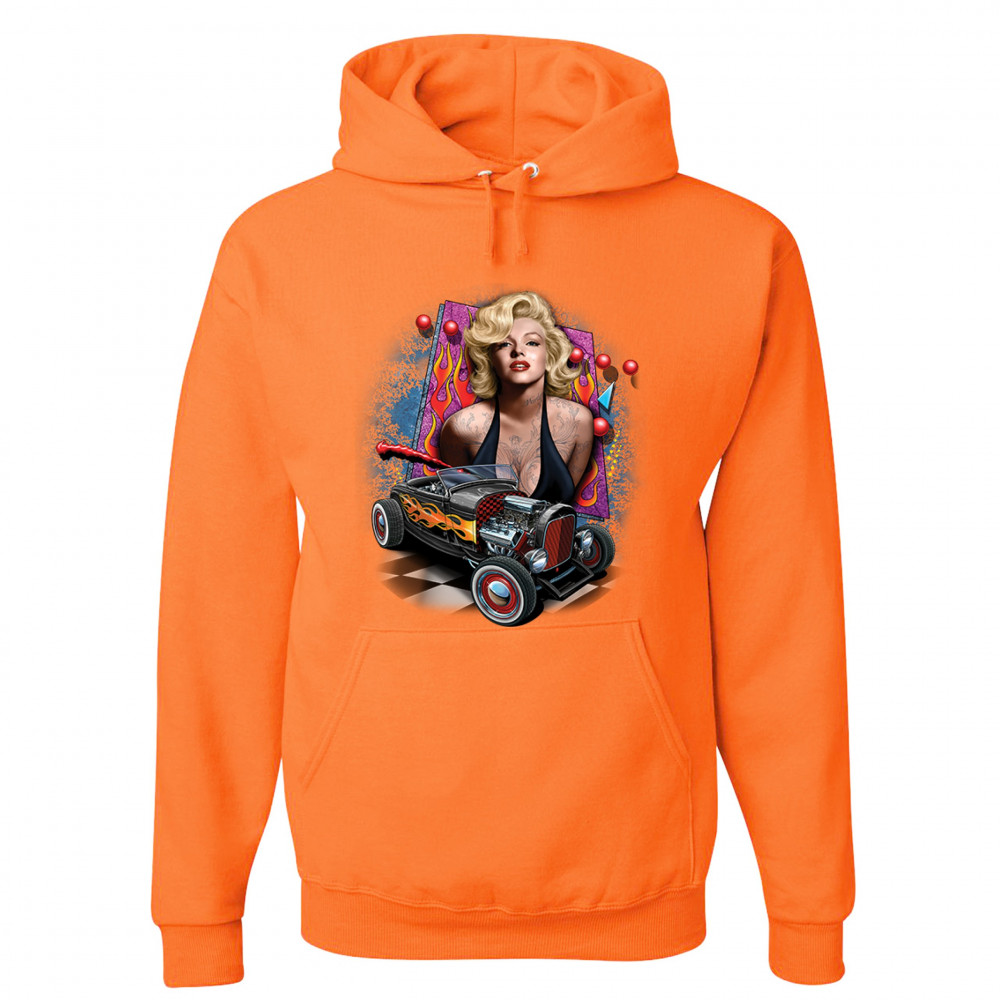 MARILYN MONROE HOT ROD sweatshirt vintage route 66 drag racing hoodie orange
