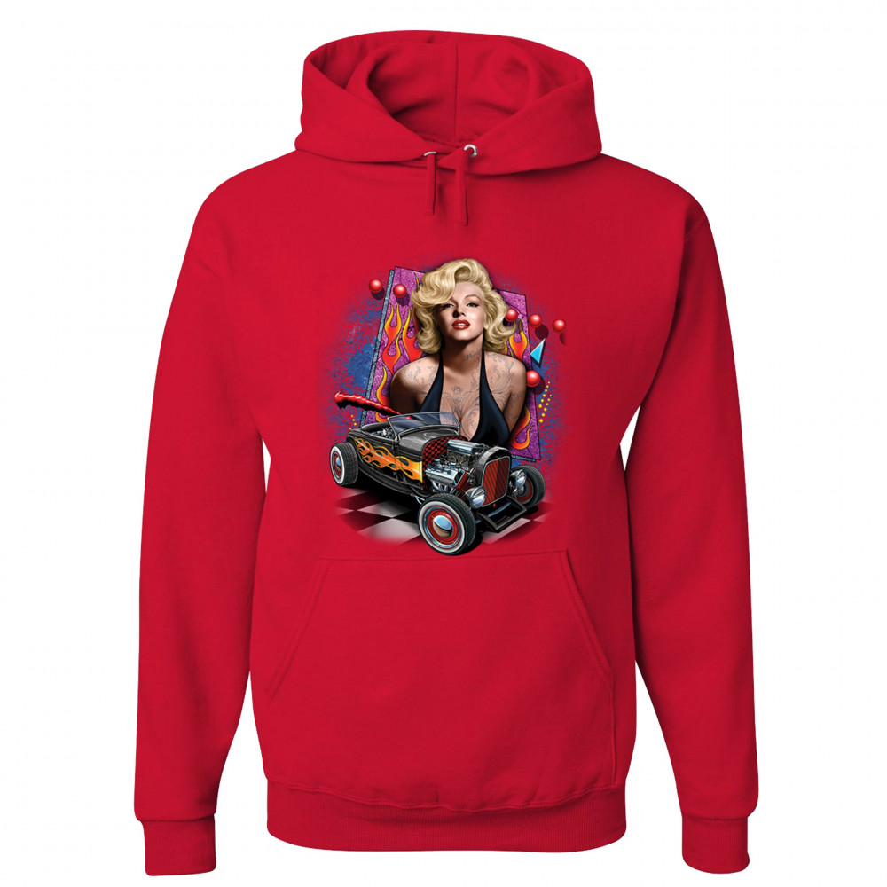 MARILYN MONROE HOT ROD sweatshirt vintage route 66 drag racing hoodie red
