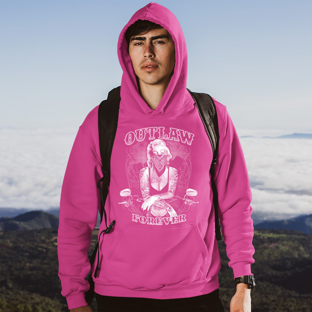 MARILYN MONROE OUTLAW FOREVER sweatshirt biker live to ride motorcycle hoodie pink