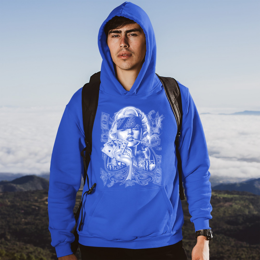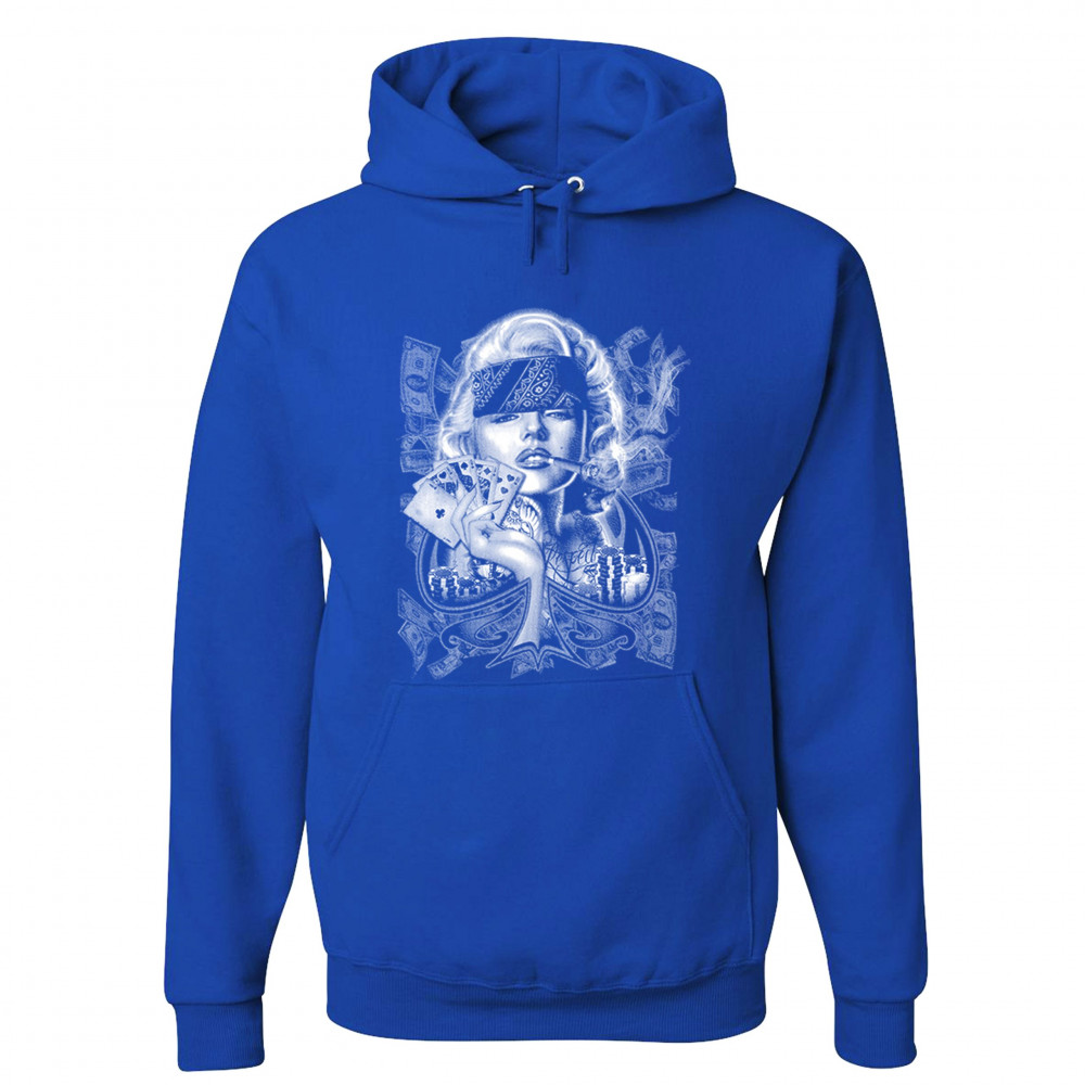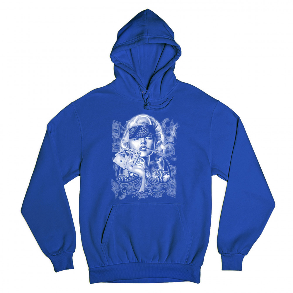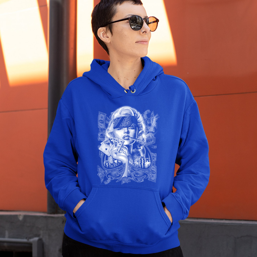 MARILYN MONROE PLAYING POKER SMOKING A JOINT sweatshirt 420 marijuana hoodie royal blue
