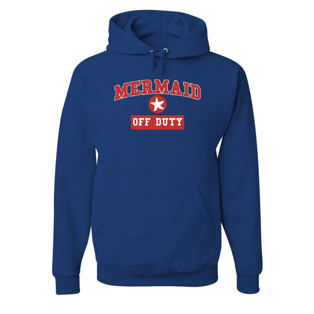 MERMAID OFF DUTY hoodie funny cute holiday vacation ocean beach sweatshirt royal blue