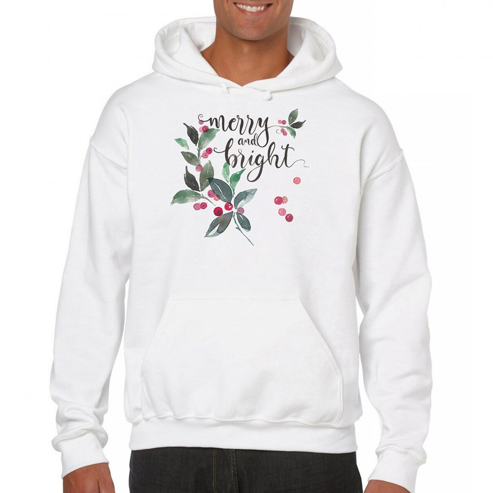 MERRY AND BRIGHT CUTE CHRISTMAS sweatshirt jolly santa clause xmas hoodie white
