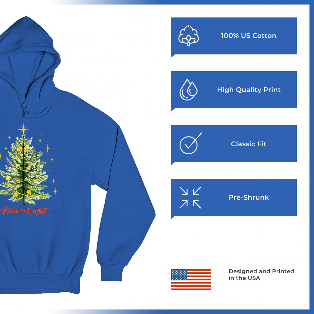 Festive “Merry and Bright†shirt featuring a joyful Christmas tree. Perfect for holiday gatherings, office parties, or Secret Santa gifts.