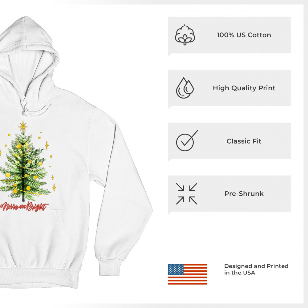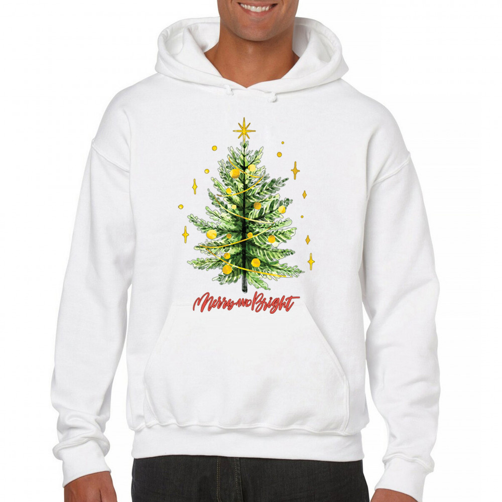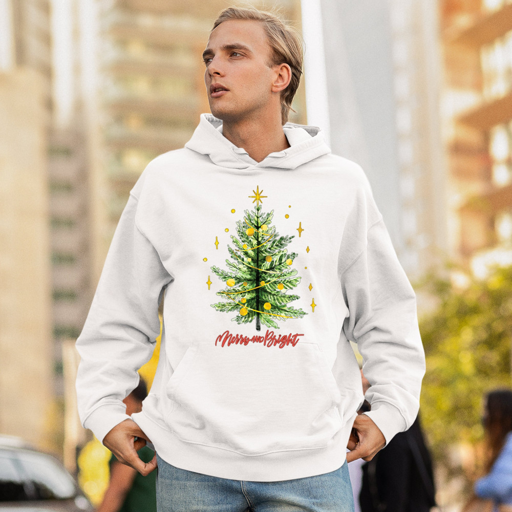 Festive “Merry and Bright†shirt featuring a joyful Christmas tree. Perfect for holiday gatherings, office parties, or Secret Santa gifts.