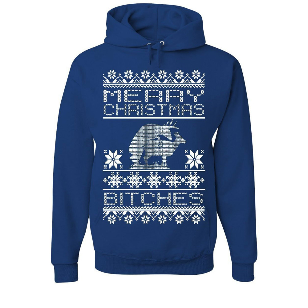 MERRY CHRISTMAS BITCHES hoodie deer humping ugly sweatshirt sweatshirt royal blue