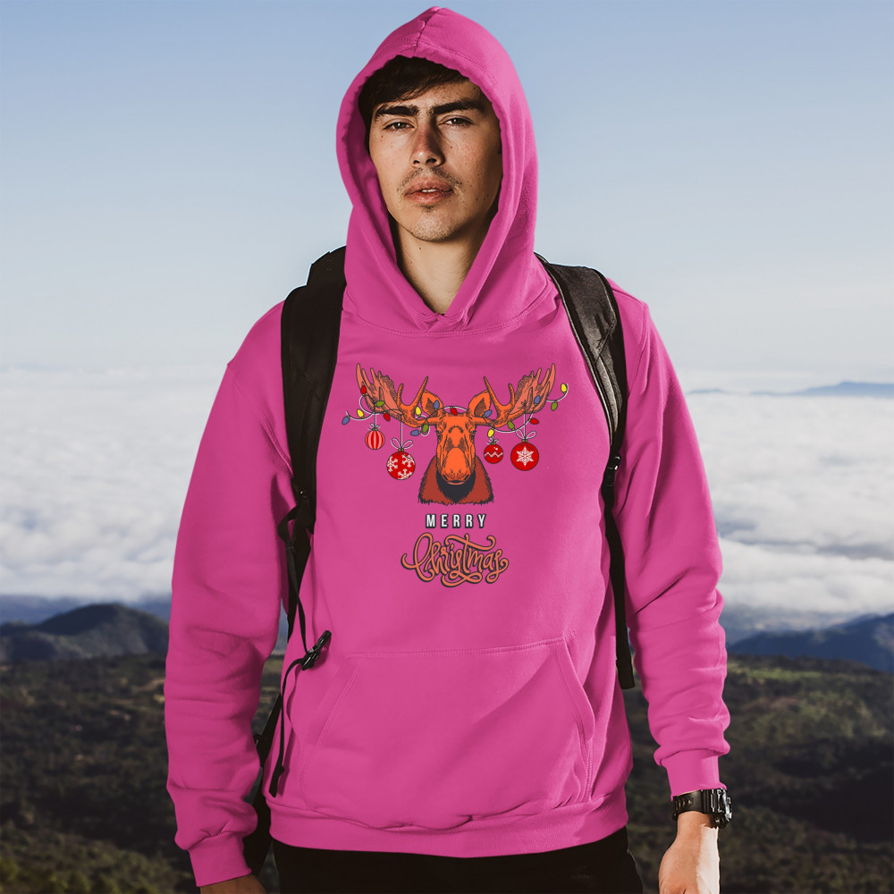 MERRY CHRISTMAS BUCK sweatshirt reindeer rudolph holiday spirit hoodie pink
