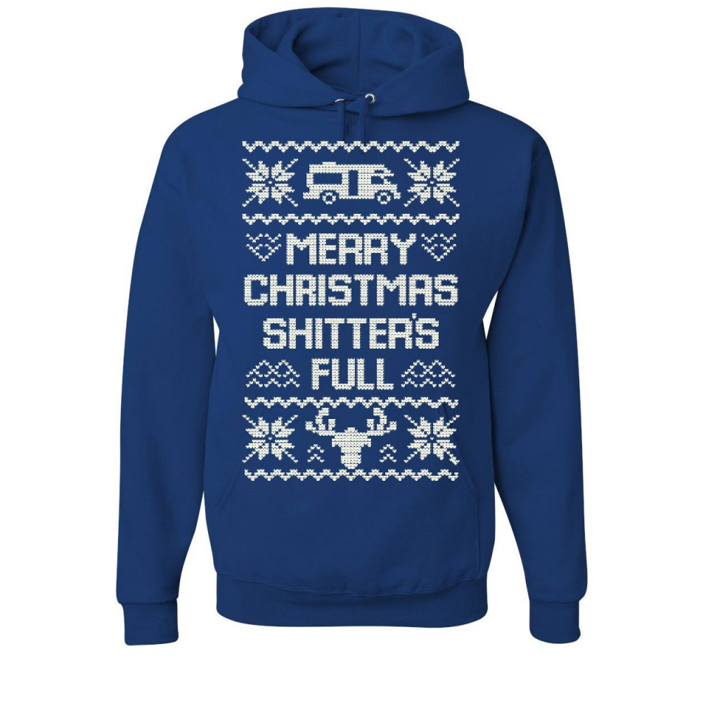 MERRY CHRISTMAS SHITTER'S FULL hoodie ugly sweatshirt xmas sweatshirt royal blue