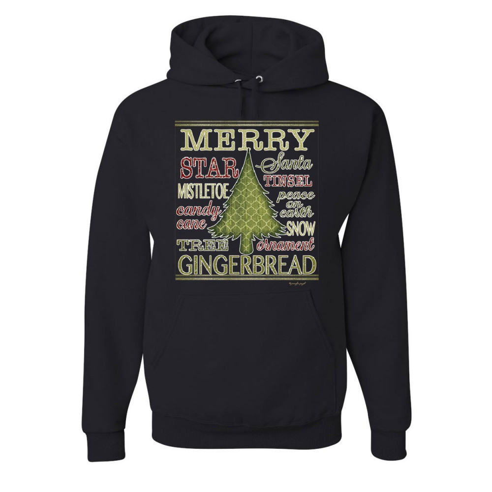 MERRY CHRISTMAS xmas tree hoodie holiday spirit joy santa snow sweatshirt black