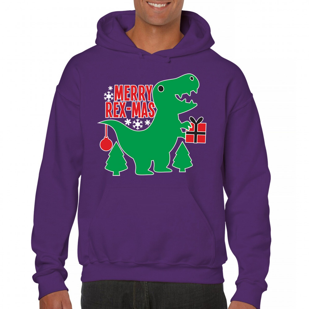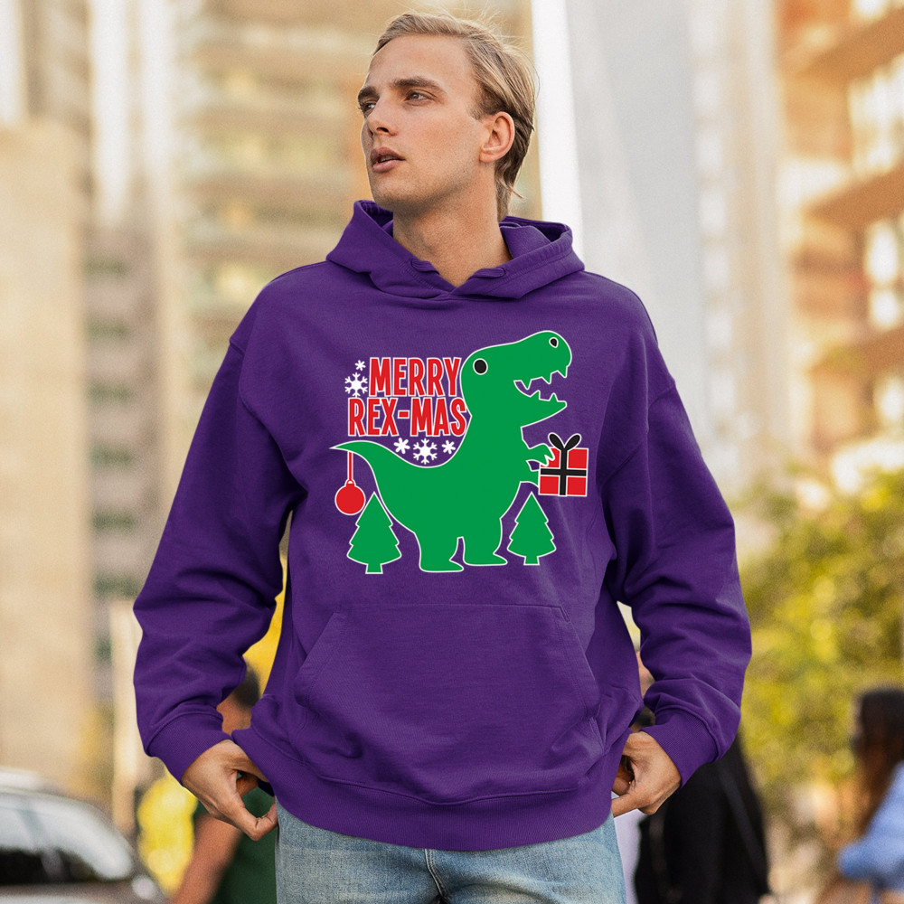 Merry Rex-Mas dinosaur Christmas design with a cute T-Rex, gift, and festive holiday details. Perfect for fun family celebrations and cheerful winter style.
