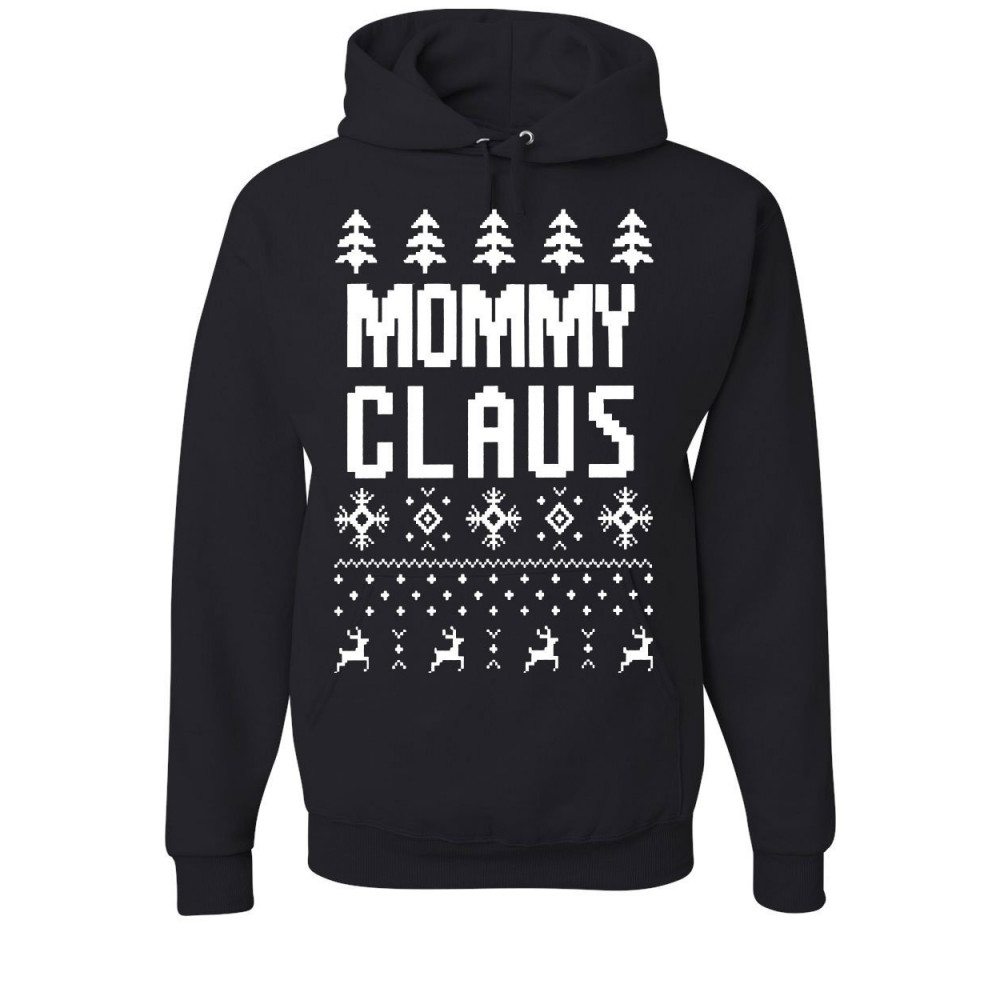MOMMY CLAUS hoodie funny ugly sweater santa christmas xmas sweatshirt black
