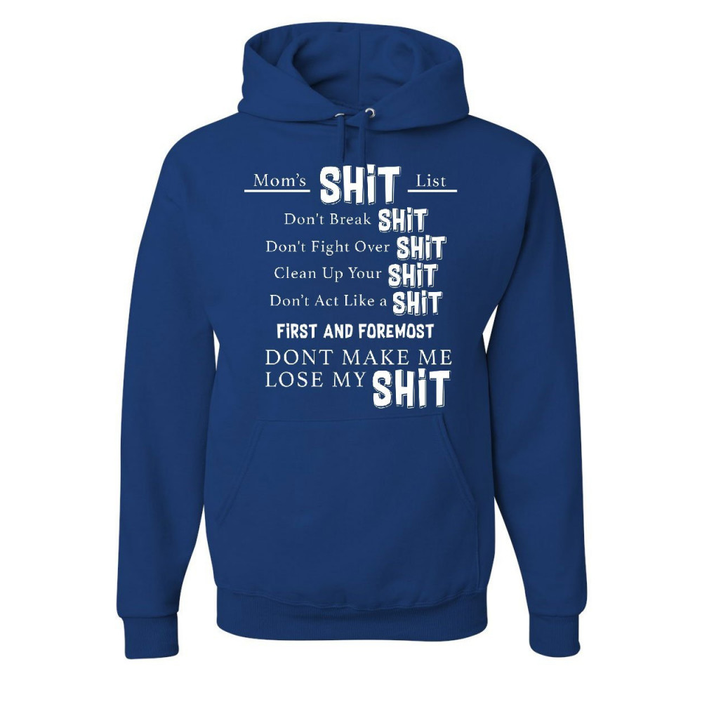 MOM'S SH*T LIST hoodie offensive humor mother's day parenting sweatshirt royal blue