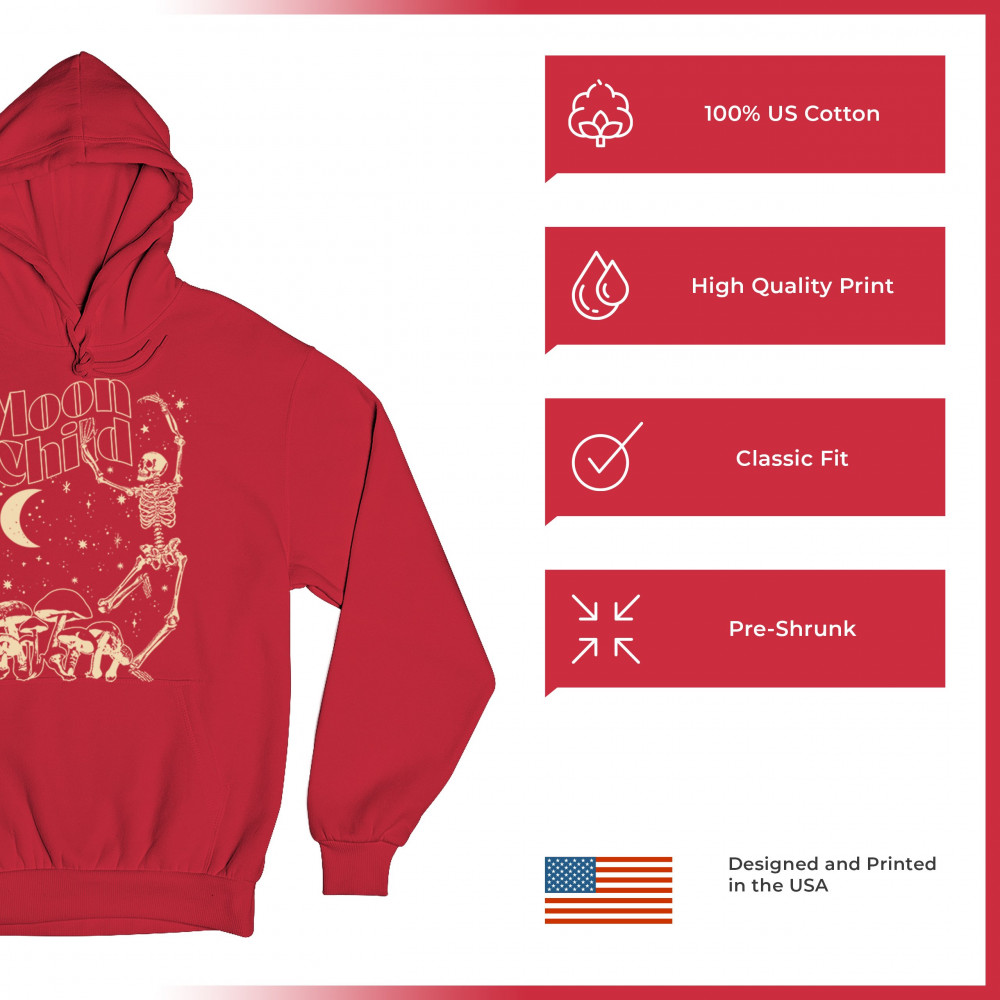 Step into cosmic wonder with this “Moon Child†design—featuring a skeleton in motion beneath a crescent moon, surrounded by stars and enchanted mushrooms. A perfect mix of gothic energy, lunar love, psychedelic art, and spiritual vibes. Ideal for festivals, vintage dreamers, or anyone guided by moonlight and magic.