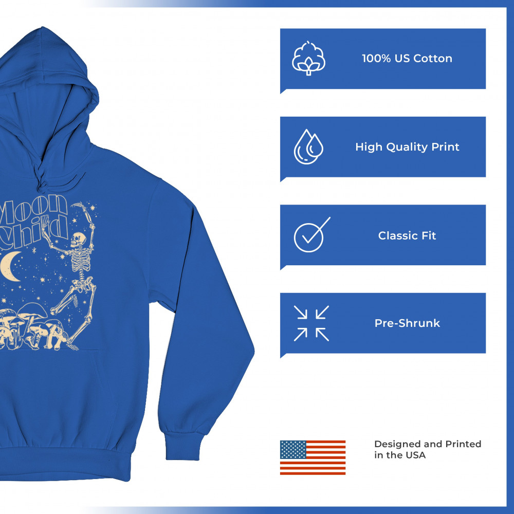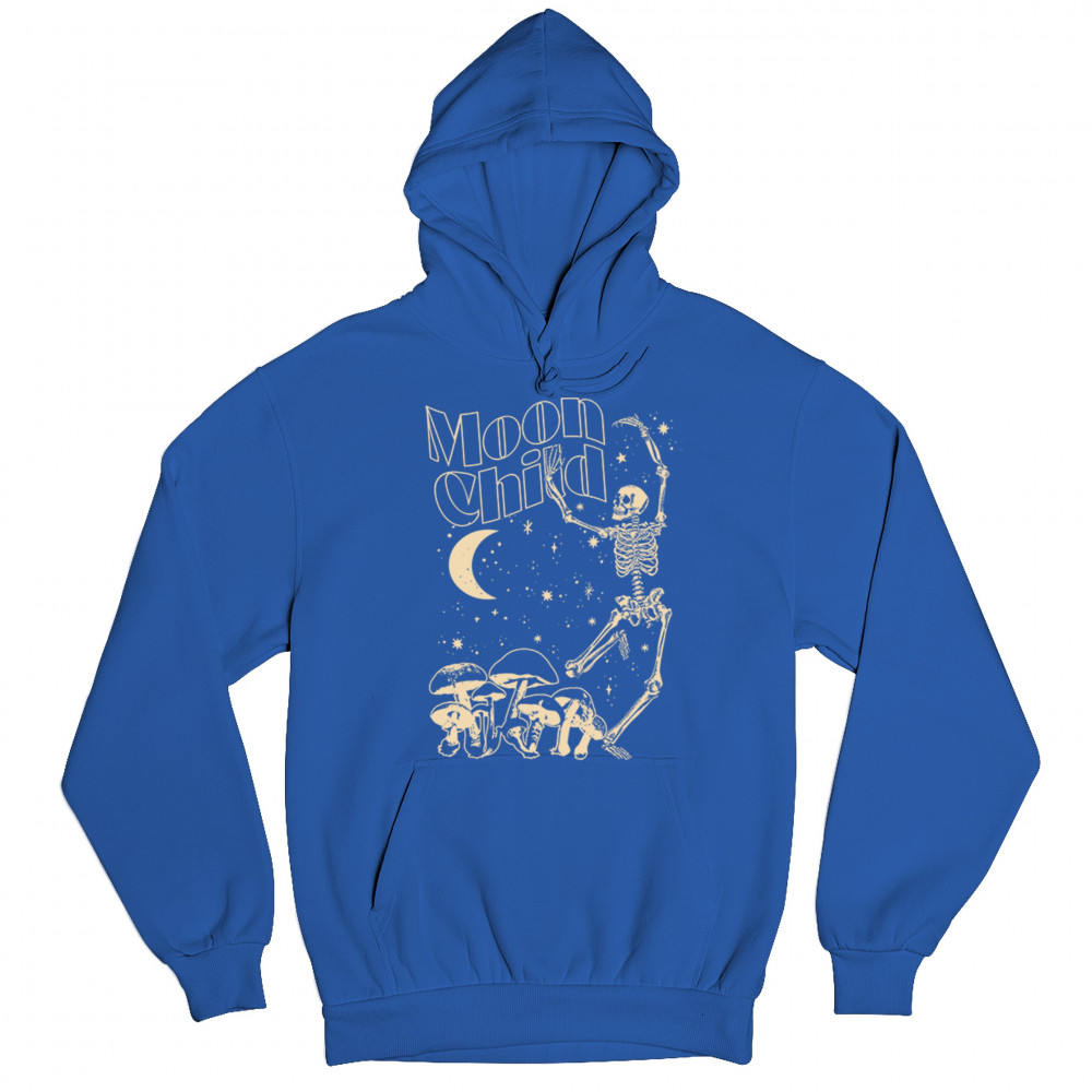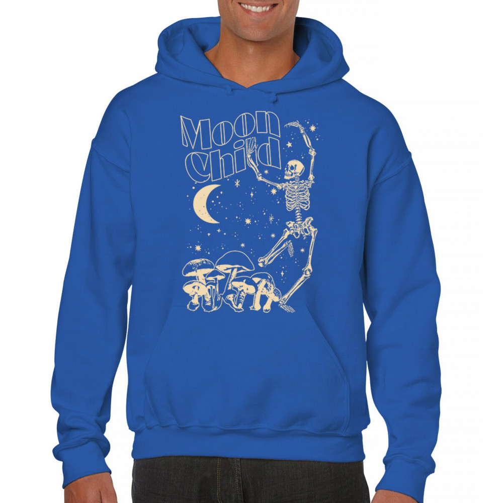 Mystical “Moon Child†design with skeleton, mushrooms, stars, and moon. Retro celestial vibes for dreamers, witches, and free spirits.