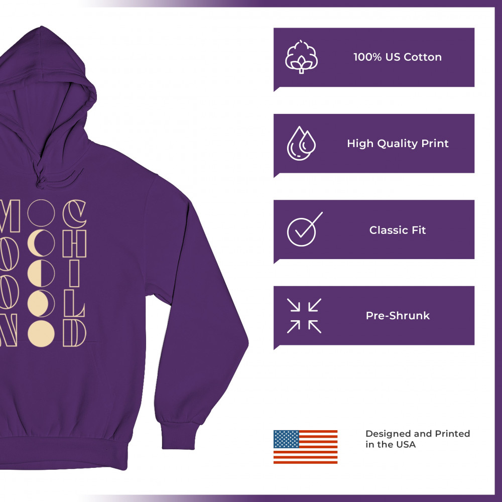 Explore the 'Moon Child' design, showcasing moon phases in minimalist style. Perfect for space lovers, it's a unique, comfortable piece ideal for any occasion.