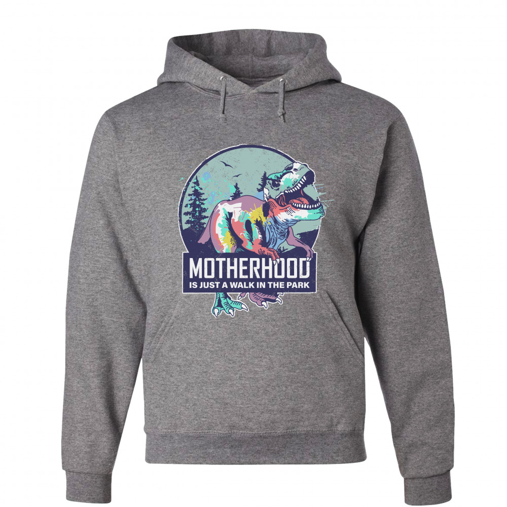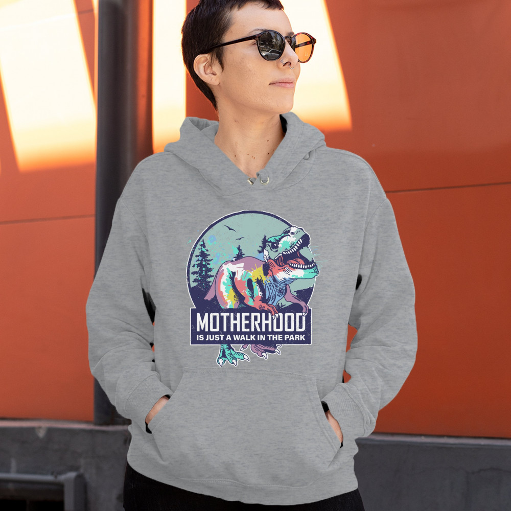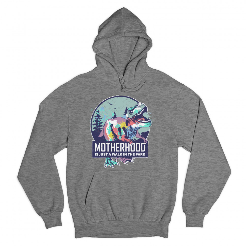 MOTHERHOOD IS JUST A WALK IN THE PARK sweatshirt t-rex mother's day hoodie gray