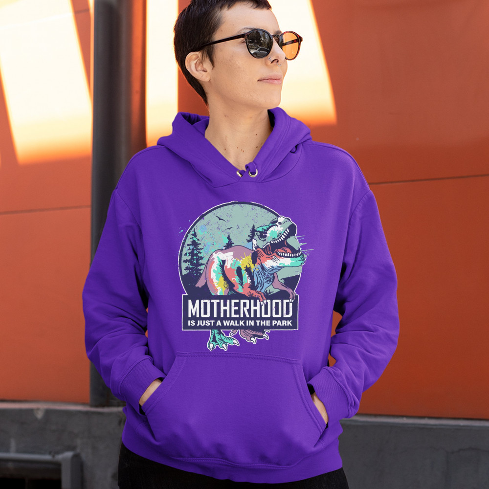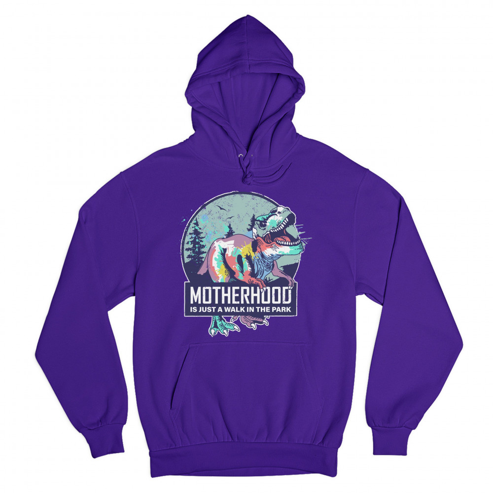 MOTHERHOOD IS JUST A WALK IN THE PARK sweatshirt t-rex mother's day hoodie purple