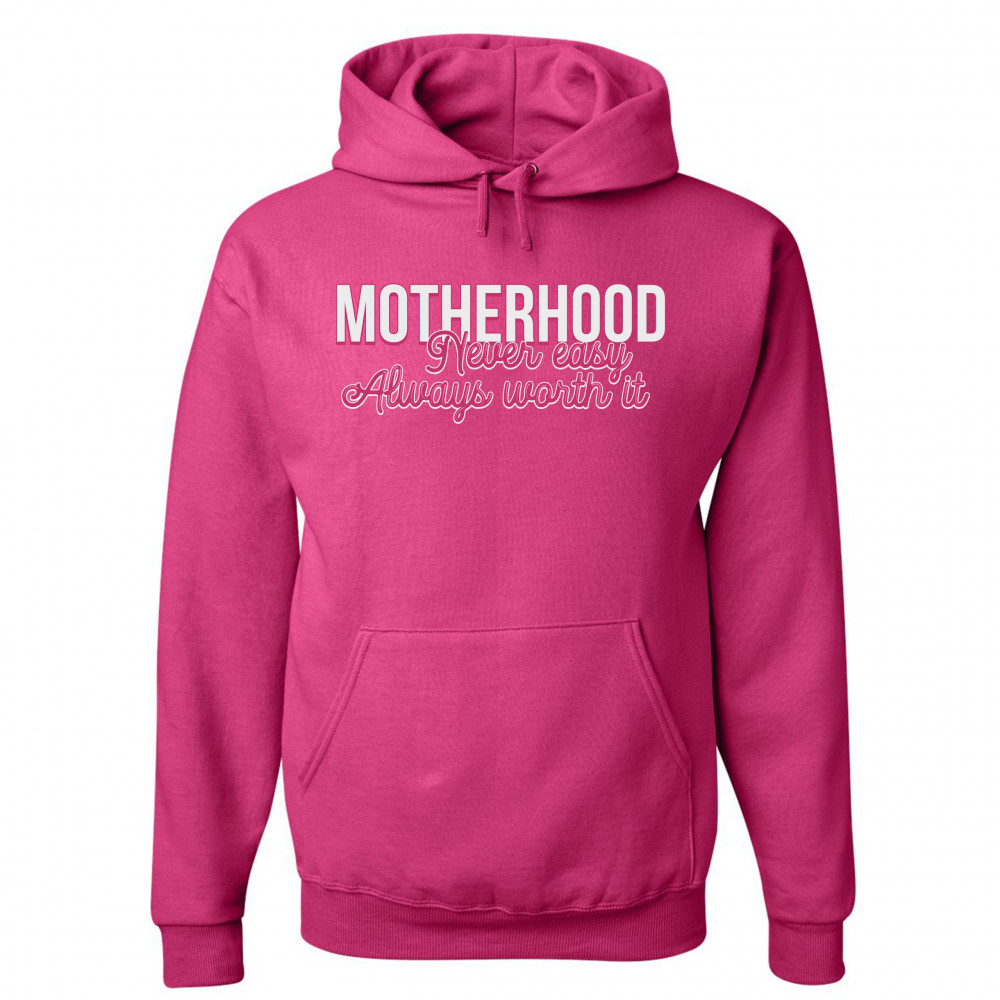 MOTHERHOOD NEVER EASY ALWAYS WORTH IT sweatshirt mother's day mom hoodie pink