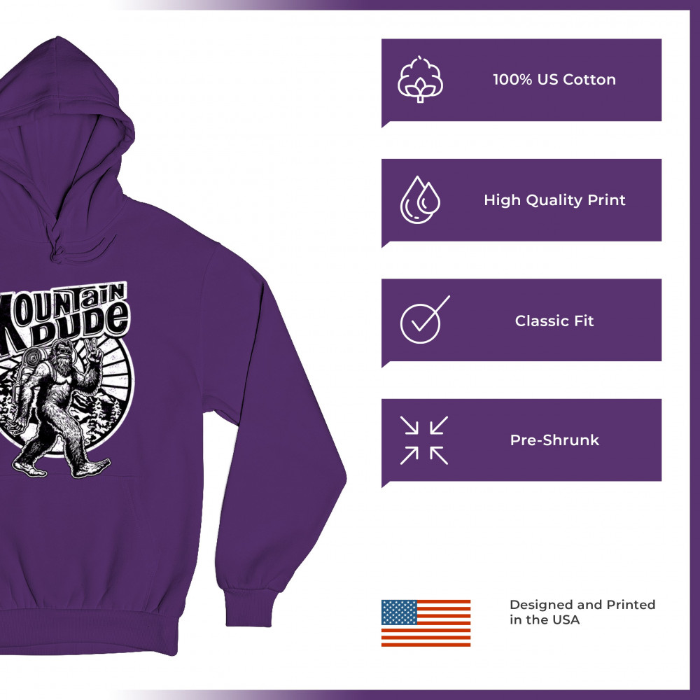 Celebrate outdoor adventures with the "Mountain Dude" design, featuring Sasquatch and mountain scenery. Perfect for hikers, campers, and Bigfoot fans.