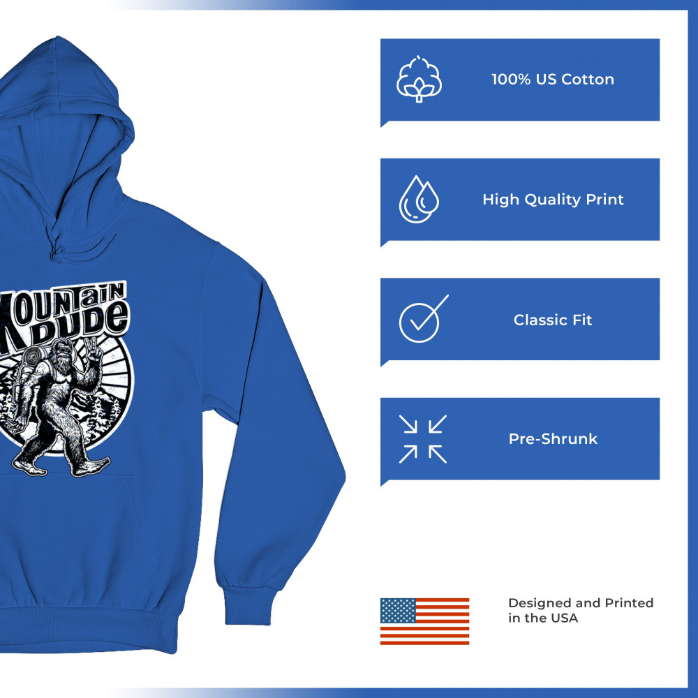 Celebrate outdoor adventures with the "Mountain Dude" design, featuring Sasquatch and mountain scenery. Perfect for hikers, campers, and Bigfoot fans.