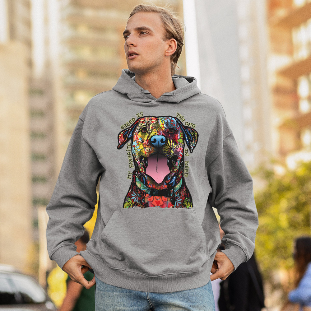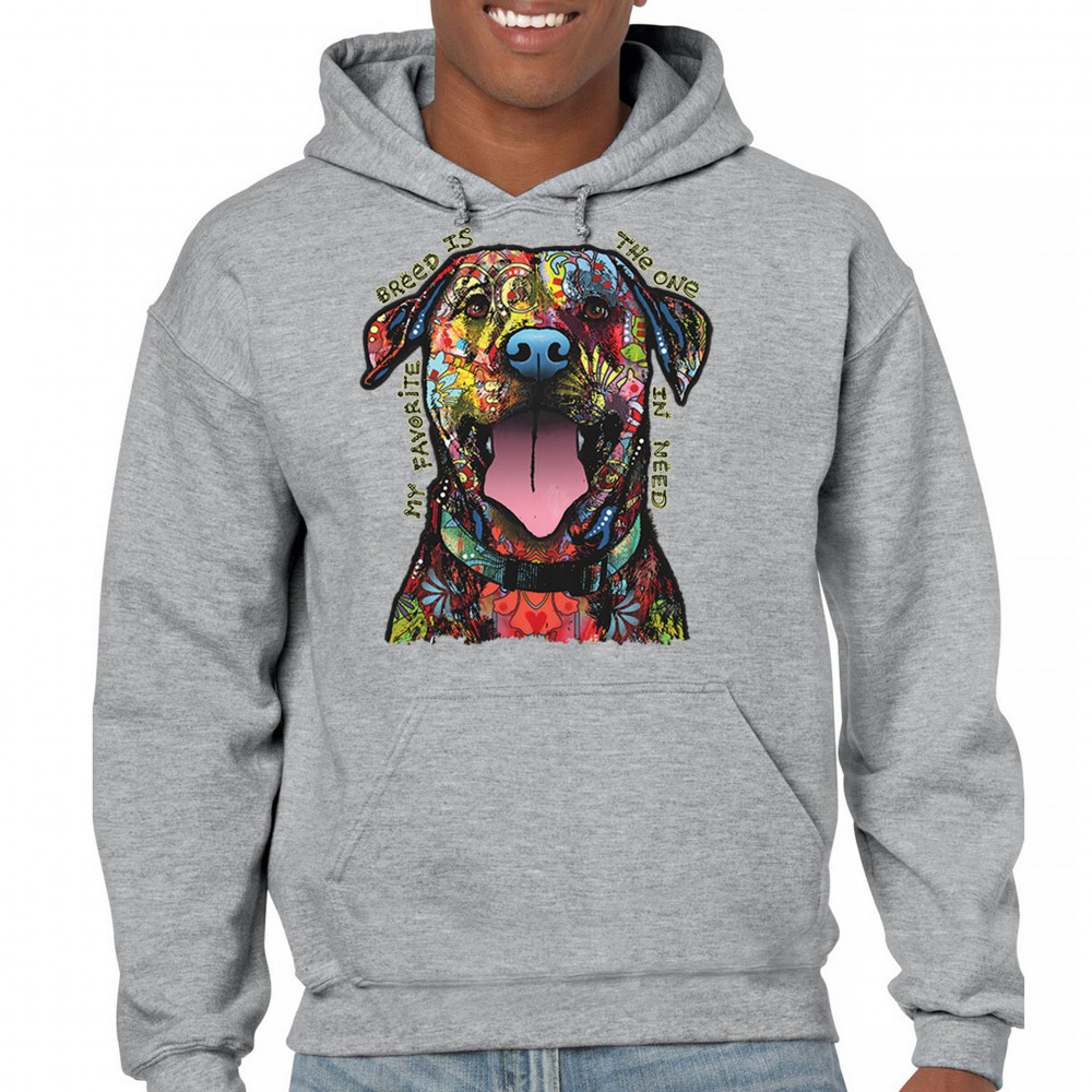 MY FAVORITE BREED IS THE ONE IN NEED sweatshirt dean russo neon dog hoodie gray