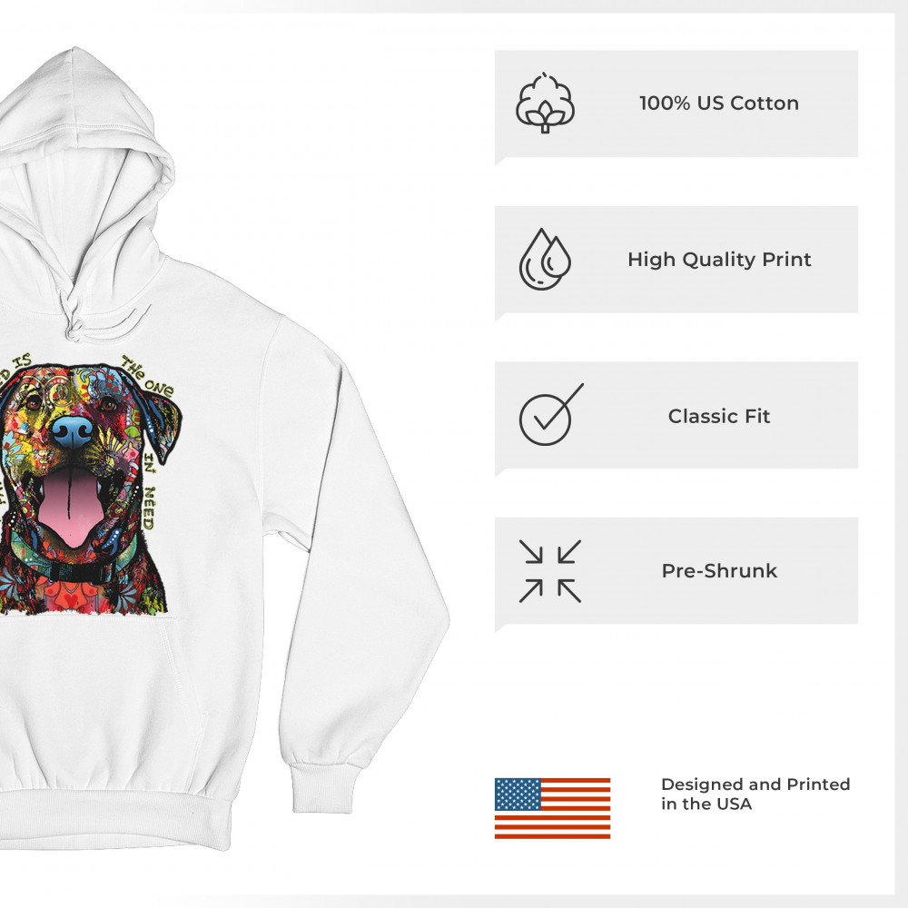 MY FAVORITE BREED IS THE ONE IN NEED sweatshirt dean russo neon dog hoodie white