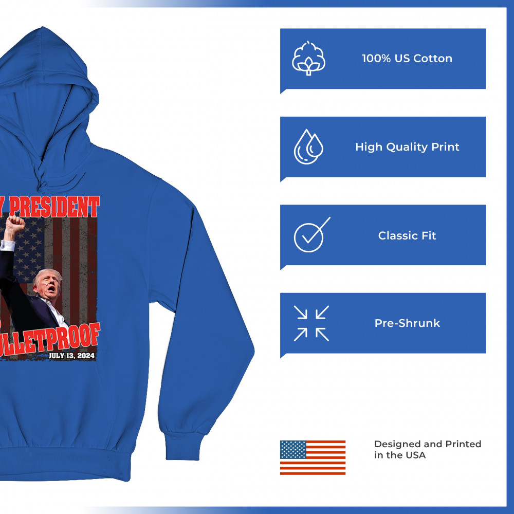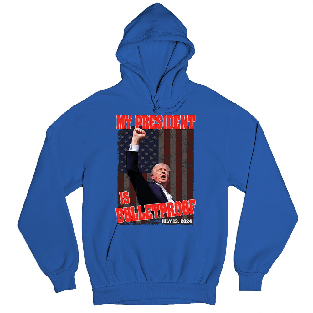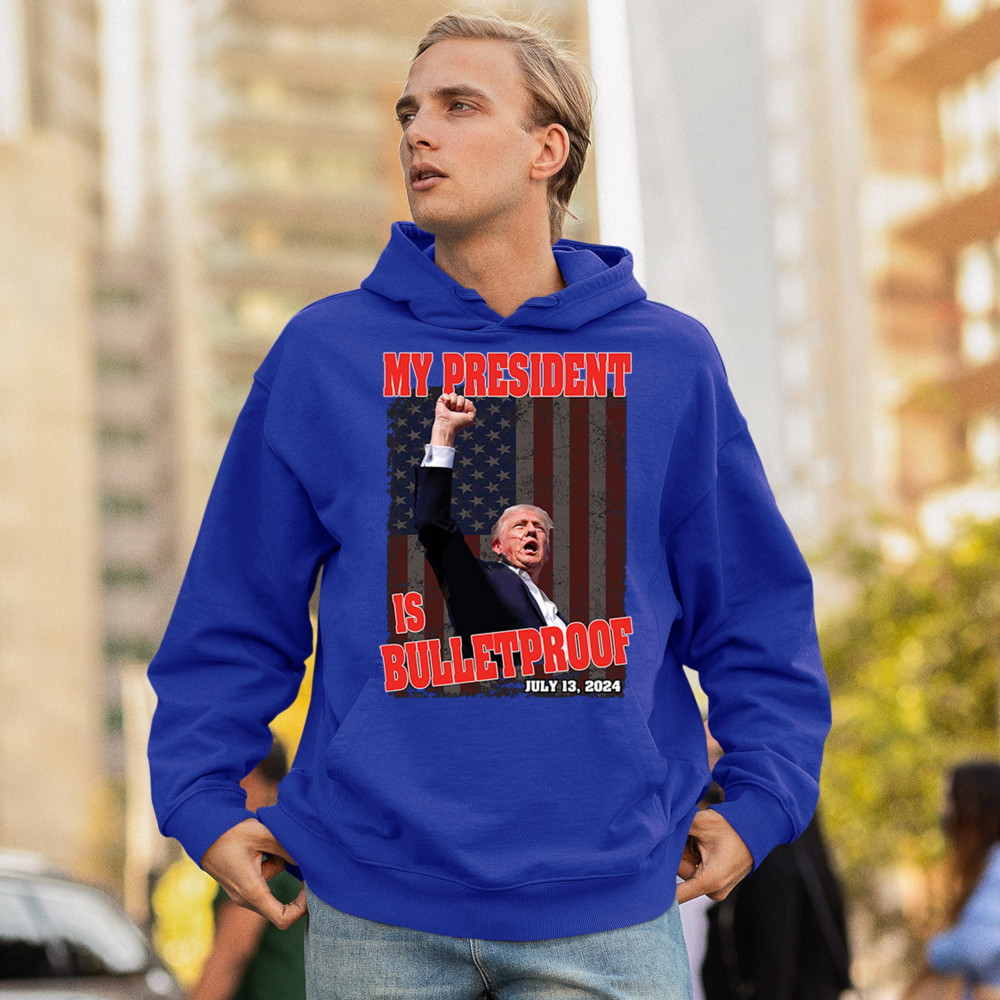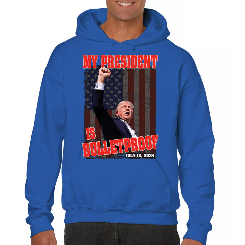 Support Trump with our "My President is Bulletproof" design, perfect for rallies and everyday wear. Show your patriotic pride and conservative values.
