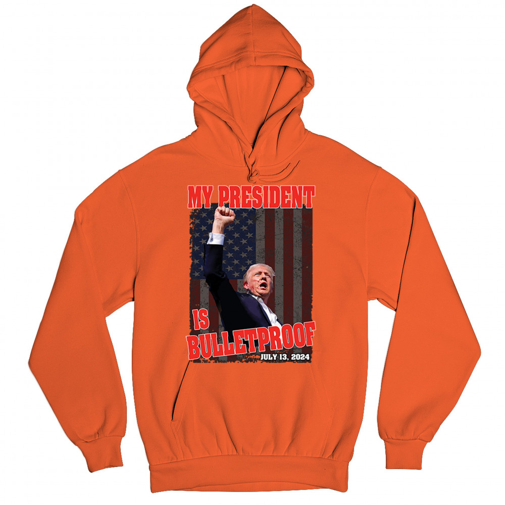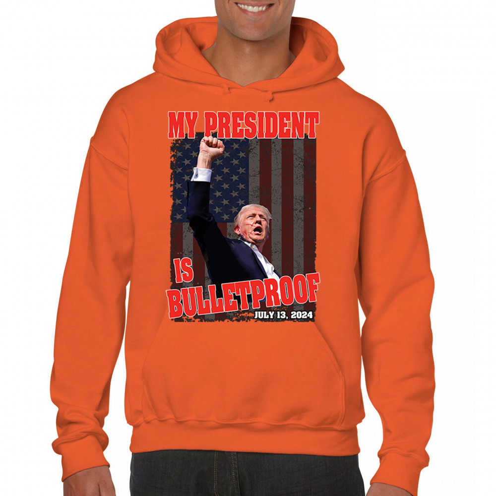 Support Trump with our "My President is Bulletproof" design, perfect for rallies and everyday wear. Show your patriotic pride and conservative values.