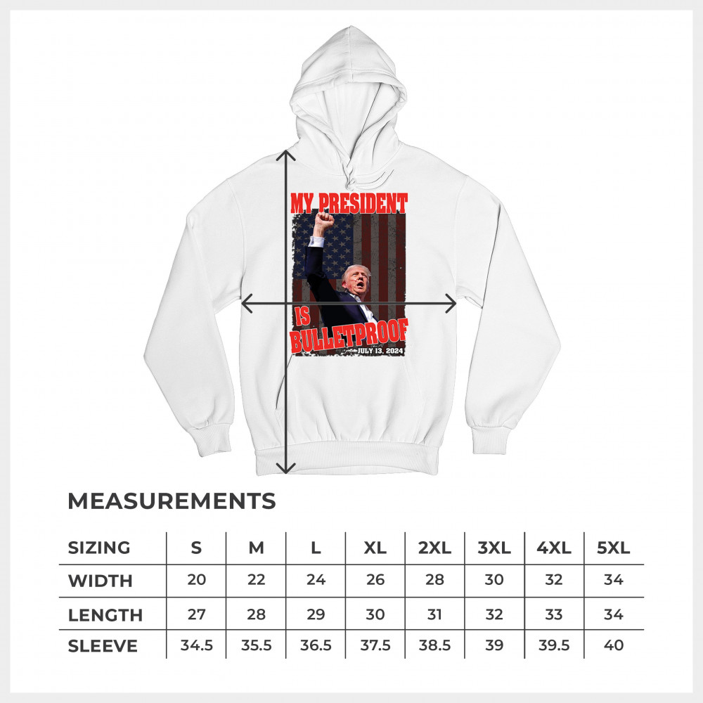 Embrace your patriotic spirit with this bold "My President is Bulletproof" design, featuring a dynamic image of Donald Trump against an American flag. Crafted from high-quality materials, this design ensures comfort and durability, making it perfect for rallies, political events, or casual wear. Show your support for Trump and his conservative values with this striking design. It’s an ideal gift for fellow supporters, symbolizing the strength and resilience of the American spirit. Stand united and proud with this powerful statement piece.