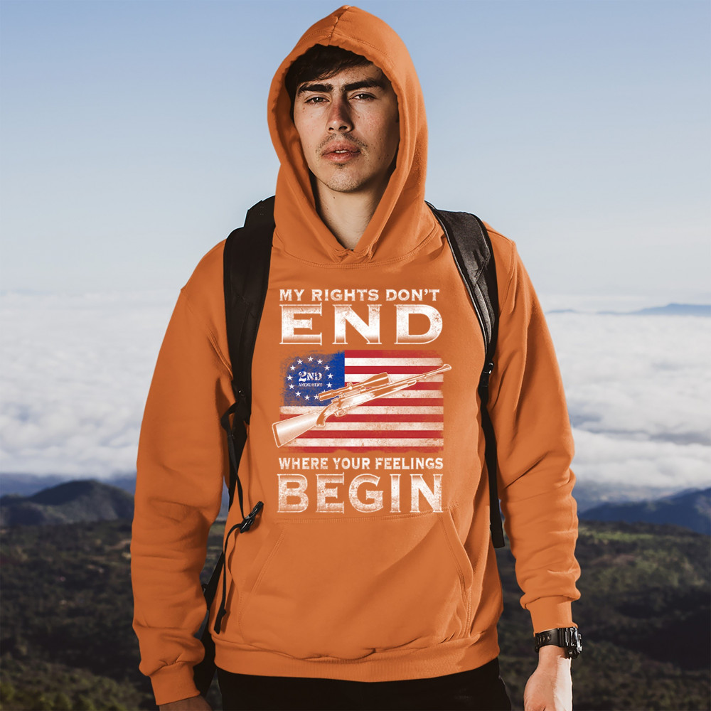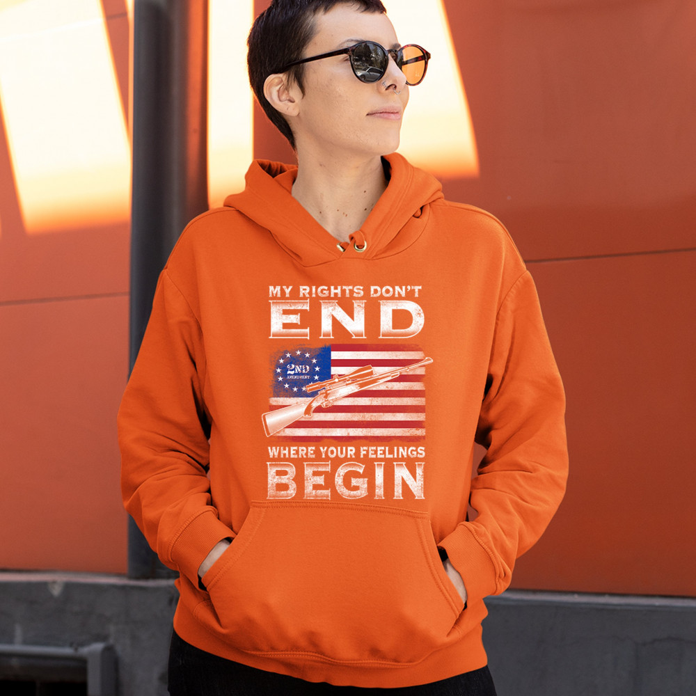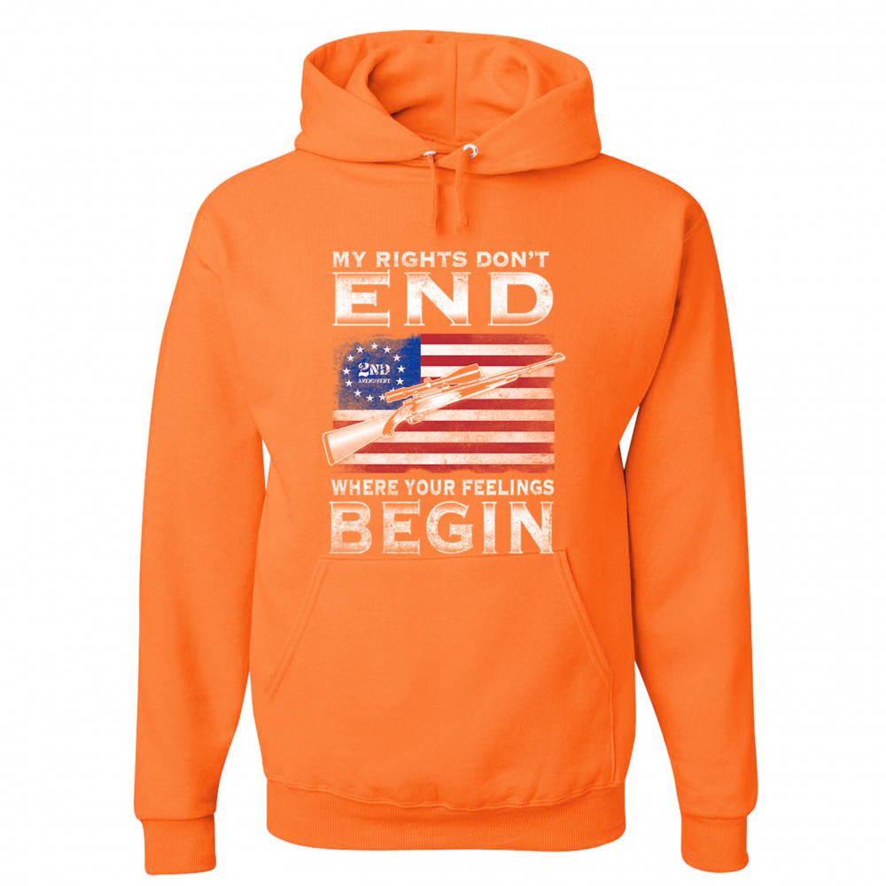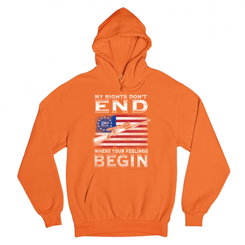 MY RIGHTS DON'T END WHERE YOUR FEELINGS BEGIN sweatshirt 2nd amendment hoodie orange