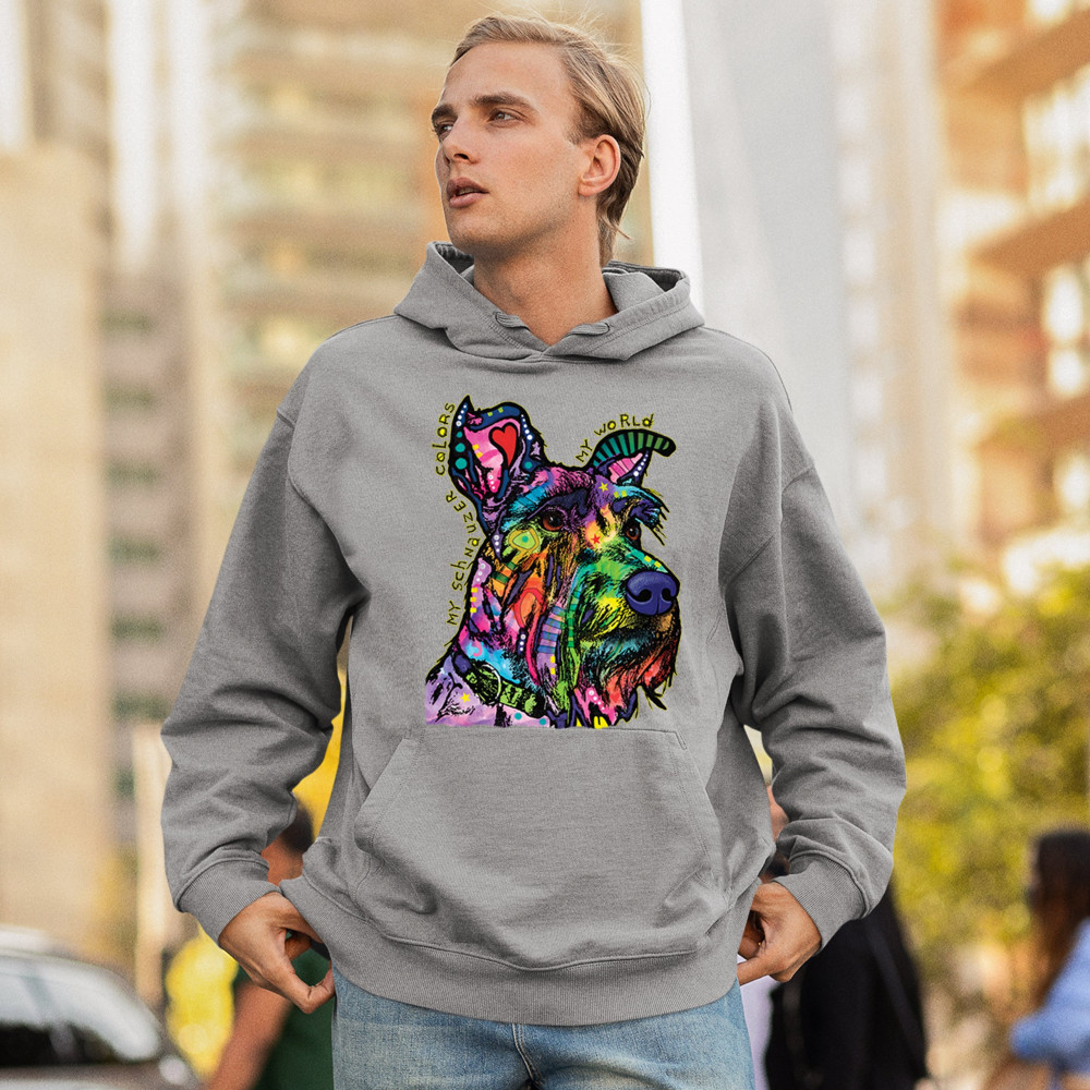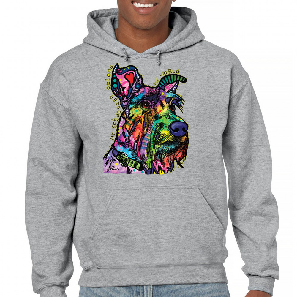 MY SCHNAUZER COLORS MY WORLD sweatshirt dean russo pet dog mom hoodie gray