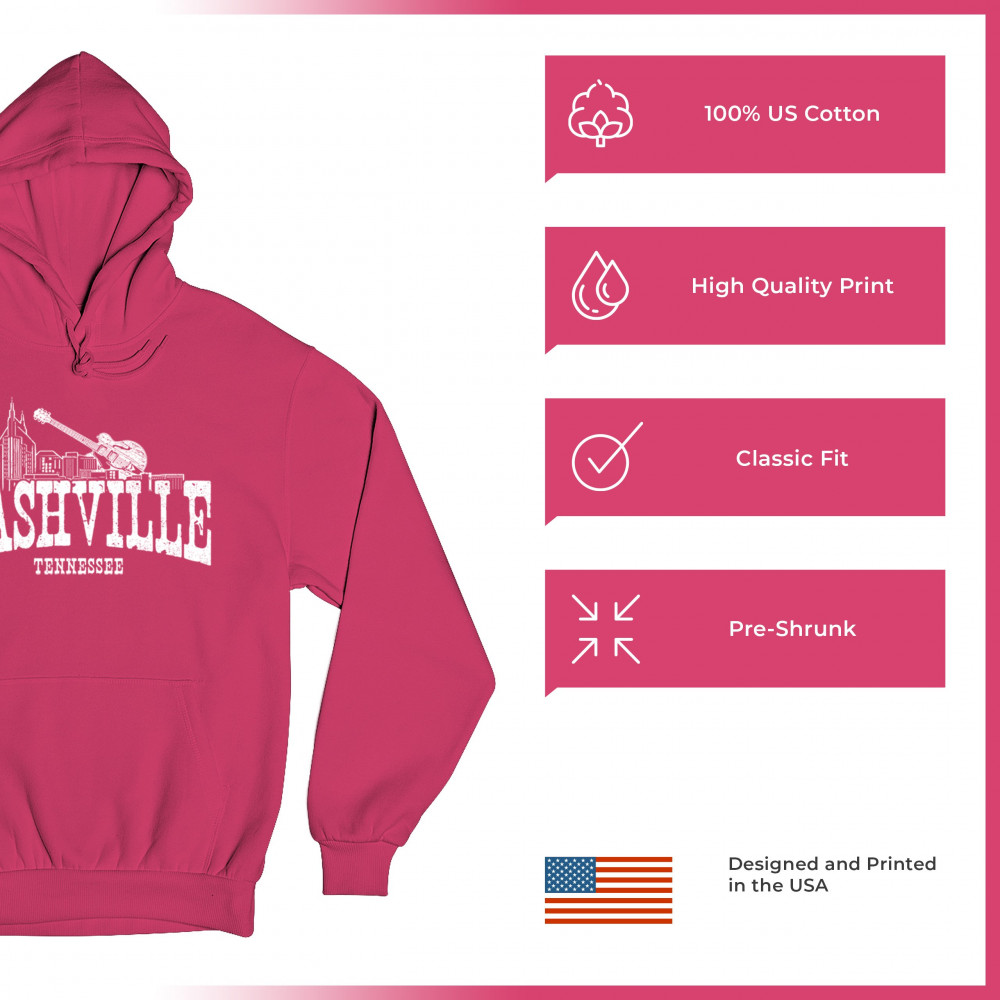Vintage Nashville skyline and guitar design perfect for music fans, tourists, and proud Tennesseans. Ideal for concerts and city adventures.