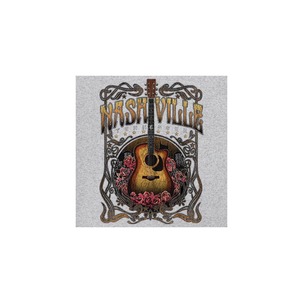 Celebrate the musical soul of Nashville with this vintage guitar and roses design. Perfect for fans of country, bluegrass, and folk music, it captures the charm of Music City with Western-style artwork. Great as a souvenir or for wearing to concerts, tours, and Tennessee road adventures.