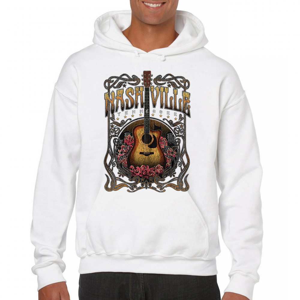Celebrate the musical soul of Nashville with this vintage guitar and roses design. Perfect for fans of country, bluegrass, and folk music, it captures the charm of Music City with Western-style artwork. Great as a souvenir or for wearing to concerts, tours, and Tennessee road adventures.