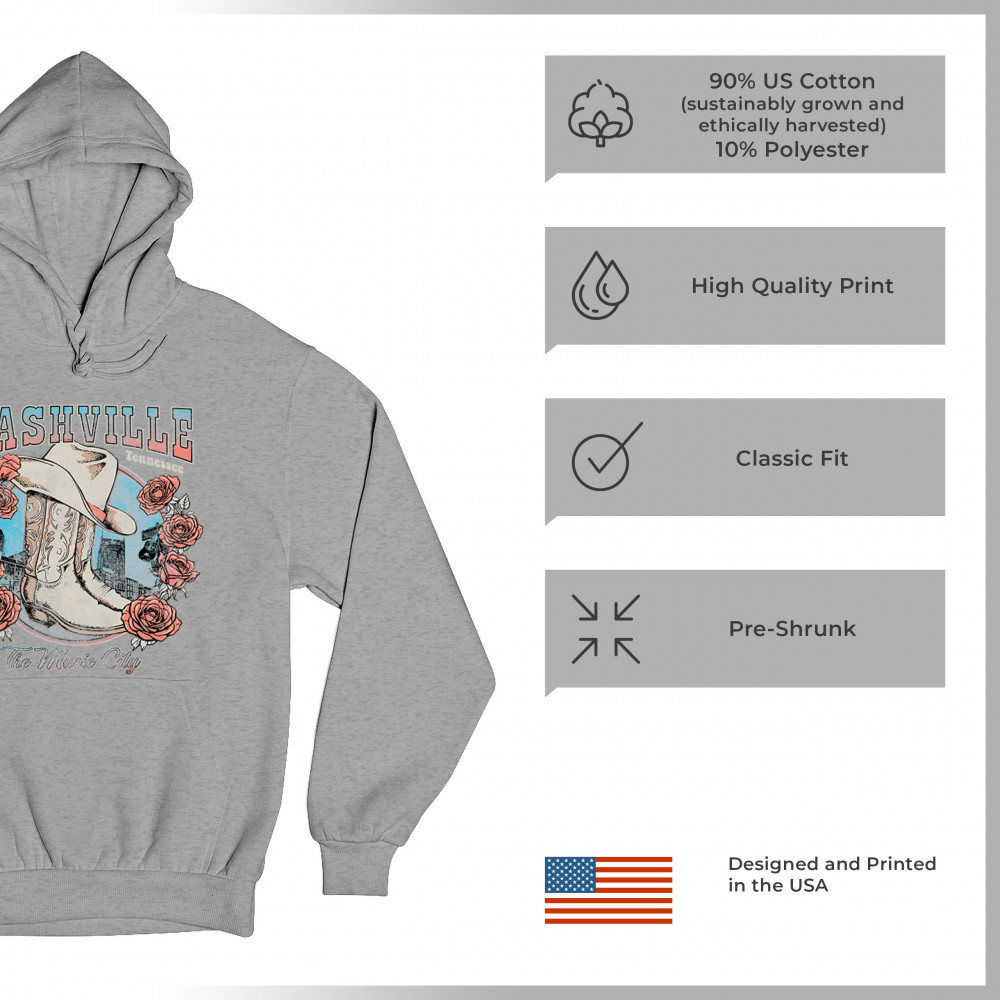 Show Nashville pride with a vintage cowgirl boots and hat design that blends country, western style, floral beauty, and southern grit.