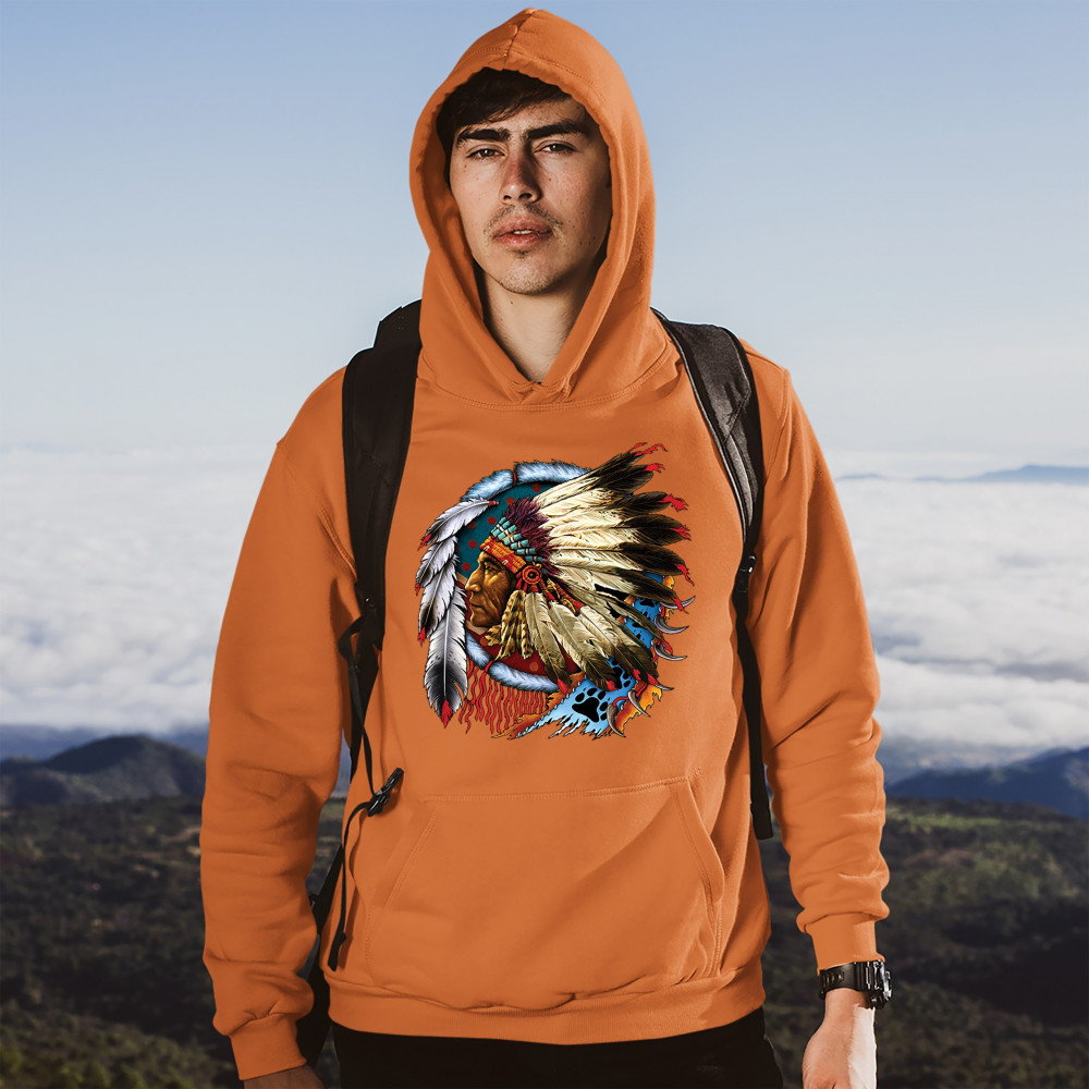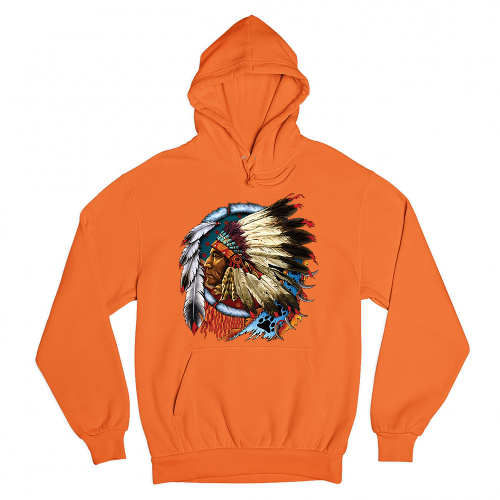 NATIVE AMERICAN CHIEF sweatshirt war bonnet dreamcatcher indigenous hoodie orange