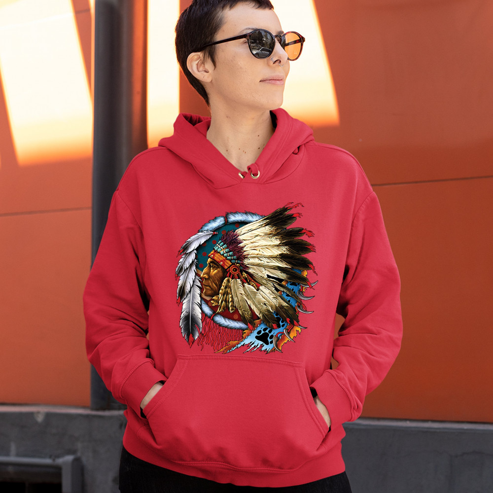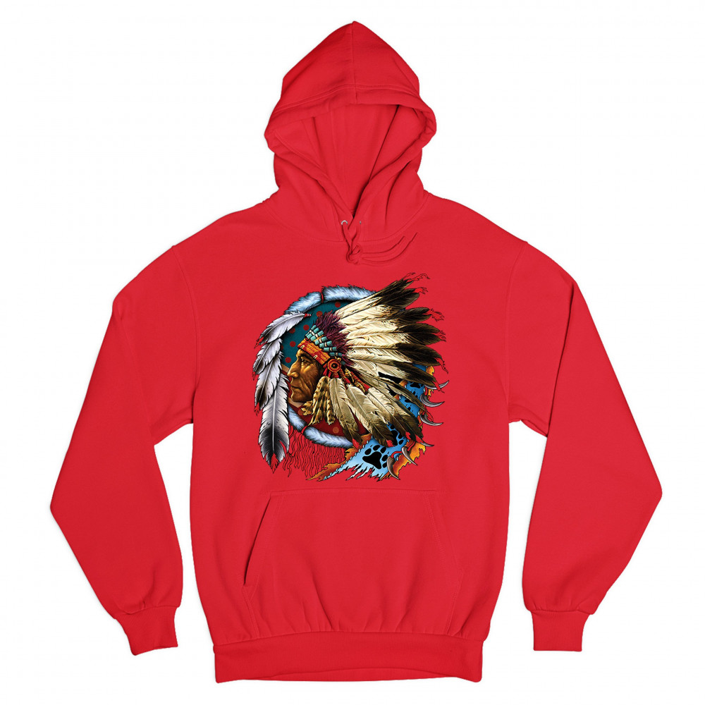 NATIVE AMERICAN CHIEF sweatshirt war bonnet dreamcatcher indigenous hoodie red