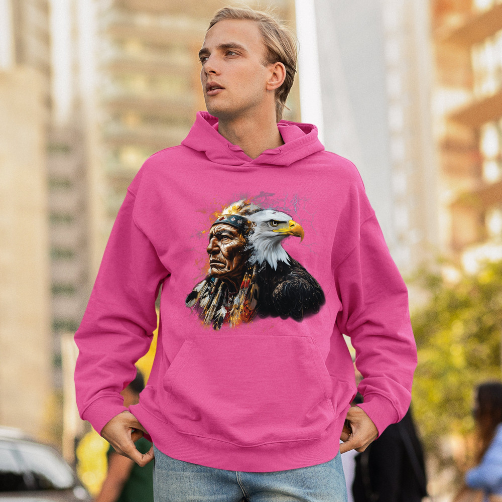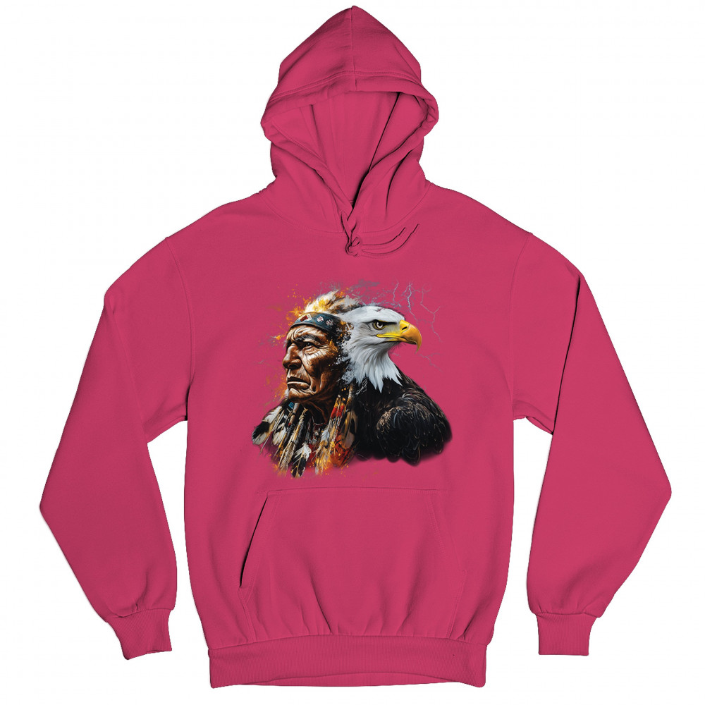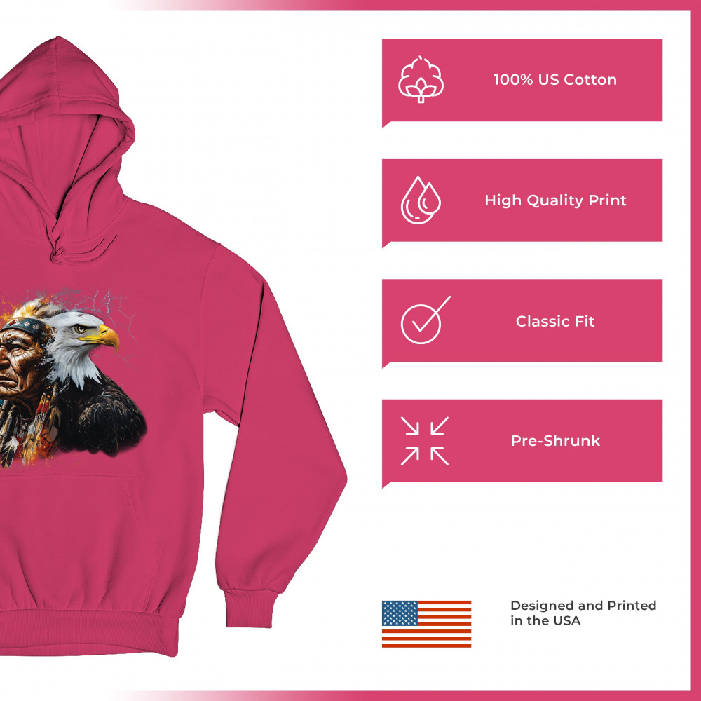 Bold tribal totem design with Native chief, eagle, lightning, and fire. A fierce blend of spirit, power, and cultural pride in one image.