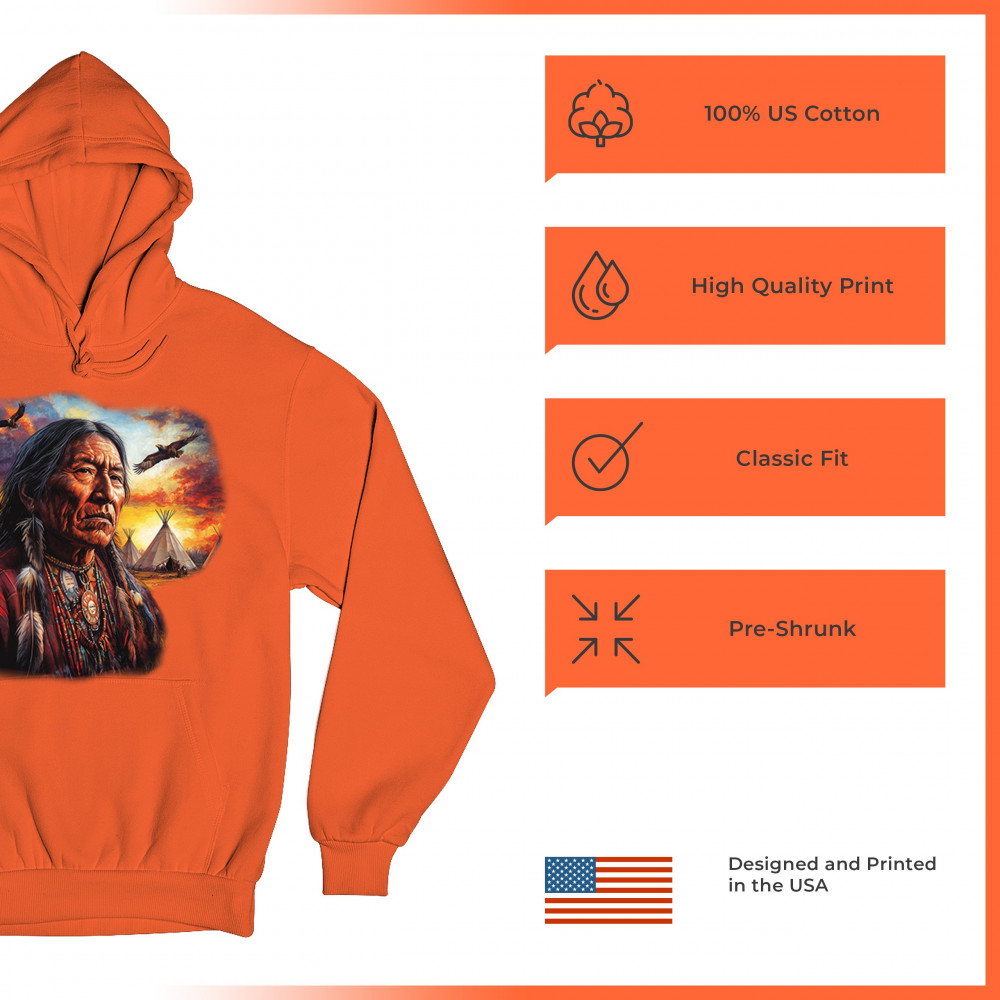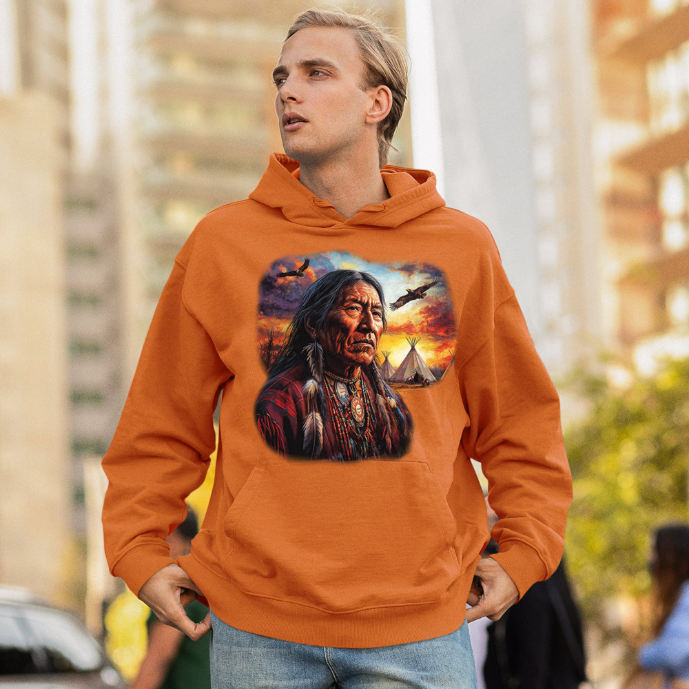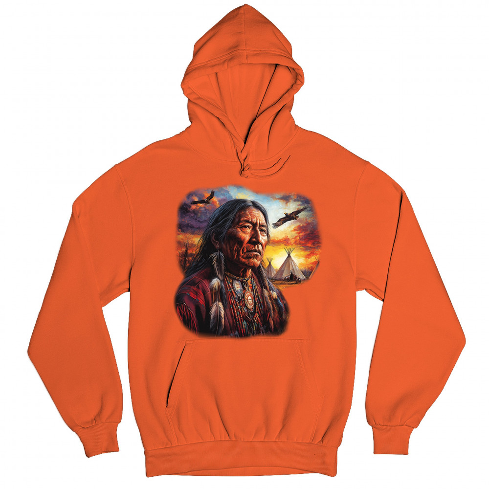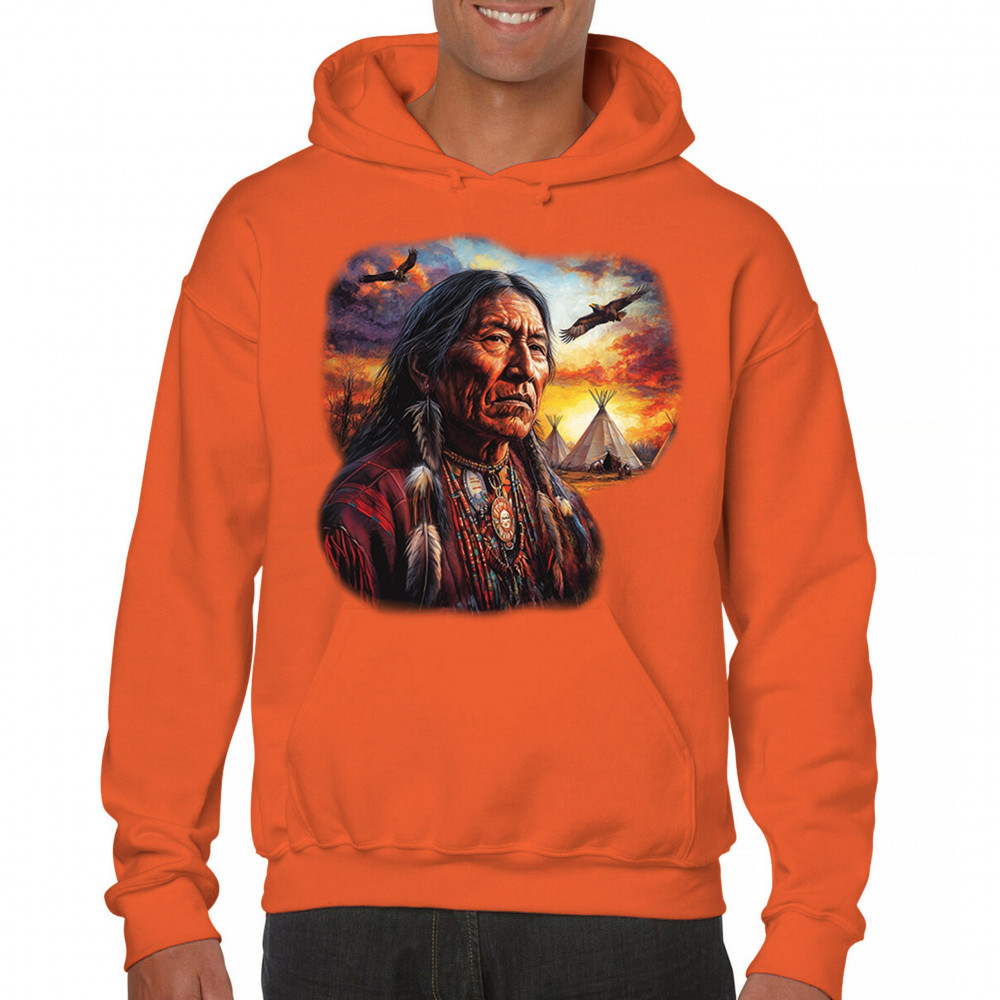 NATIVE AMERICAN VILLAGE CHIEF sweatshirt tribal warrior spirit sunset hoodie orange