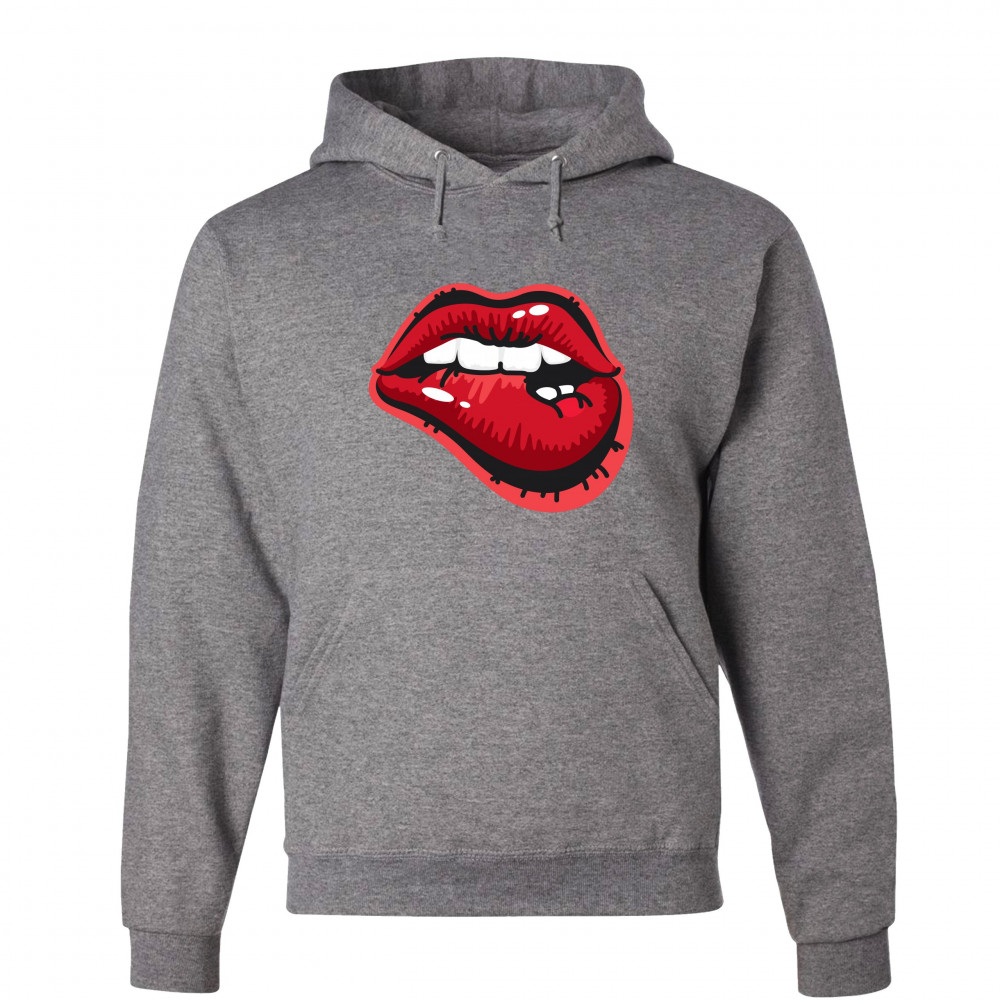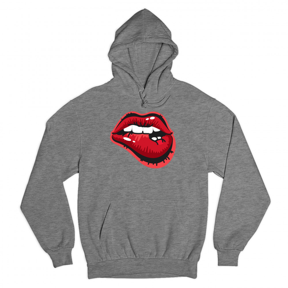 NAUGHTY BITING LIPS sweatshirt hot luscious sexy red lips hoodie gray