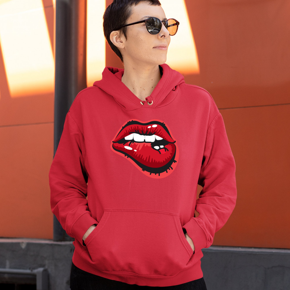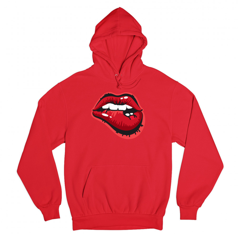 NAUGHTY BITING LIPS sweatshirt hot luscious sexy red lips hoodie red