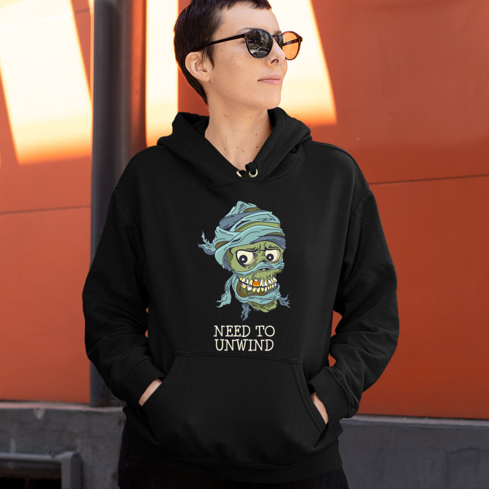 NEED TO UNWIND sweatshirt funny halloween zombie trick-or-treat hoodie black