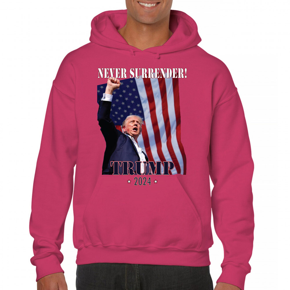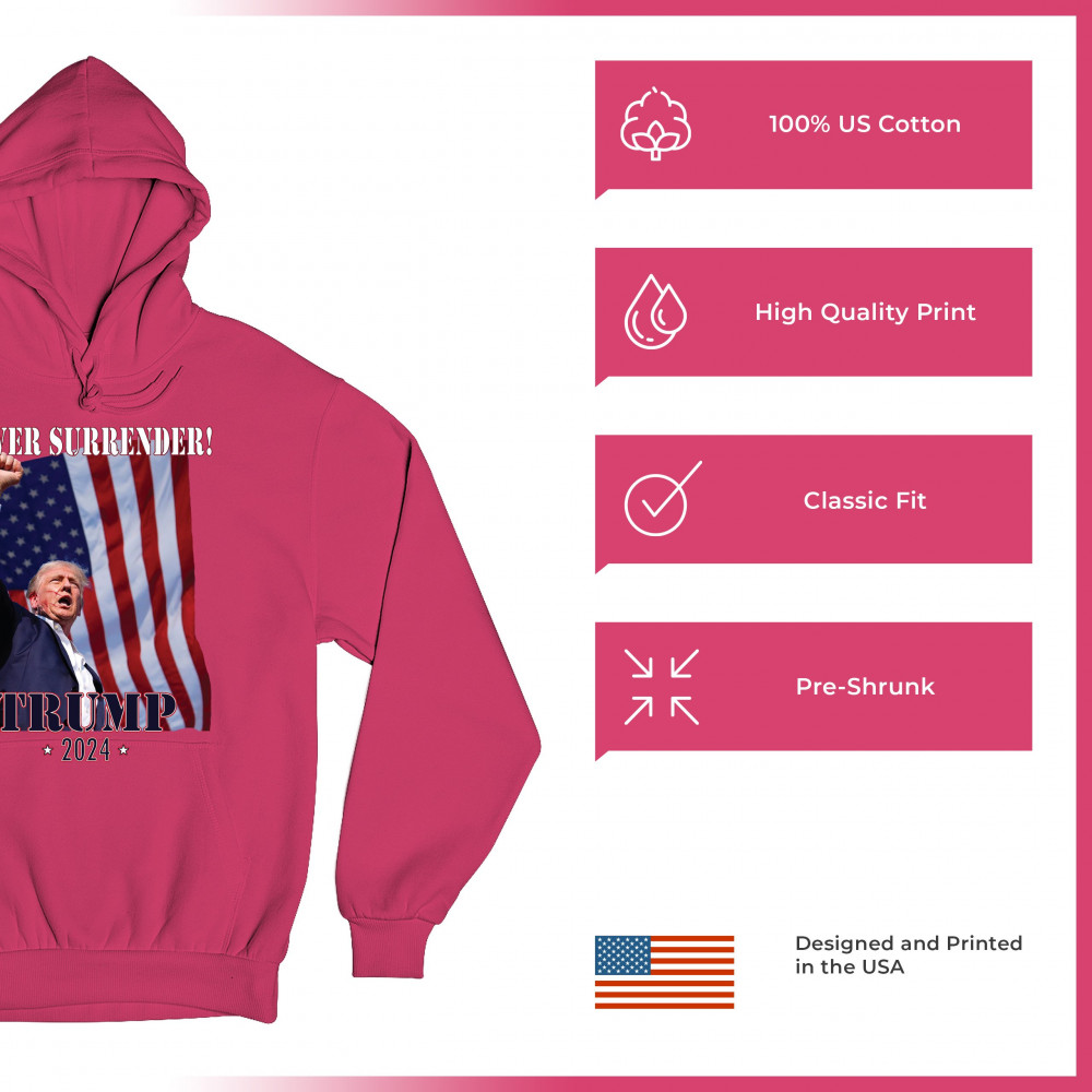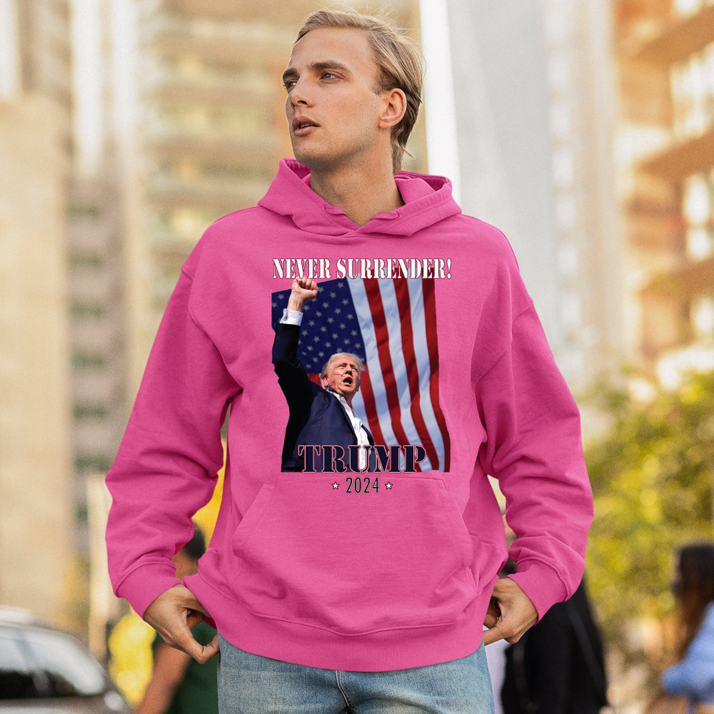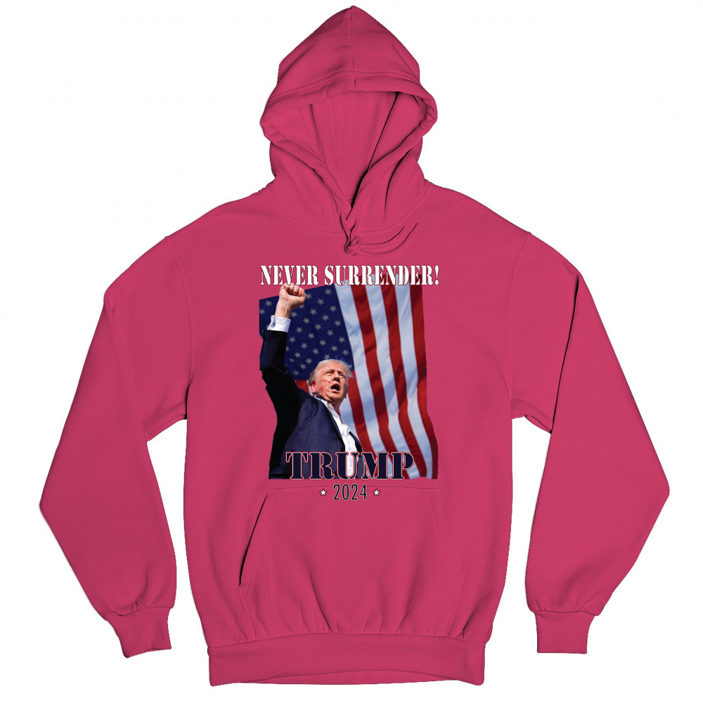 NEVER SURRENDER TRUMP 2024 sweatshirt president maga rally america fjb hoodie pink