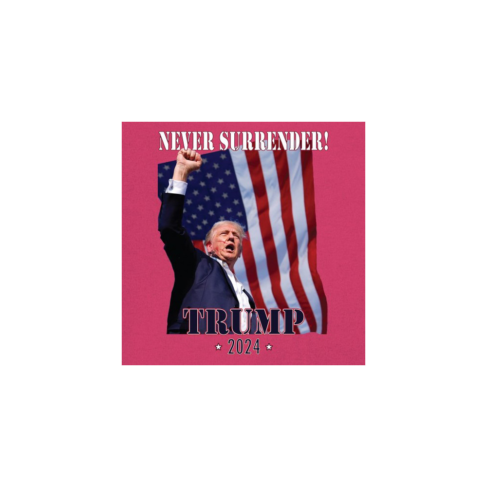 Celebrate your patriotic spirit and political stance with our "Never Surrender! Trump 2024" design. This powerful graphic showcases Donald Trump with a raised fist against the backdrop of the American flag, symbolizing resilience and determination. Ideal for rallies, events, and everyday wear, this design is crafted from premium materials for comfort and durability. Stand out and show your support for America's future with this striking and bold statement piece, perfect for any proud Trump supporter.