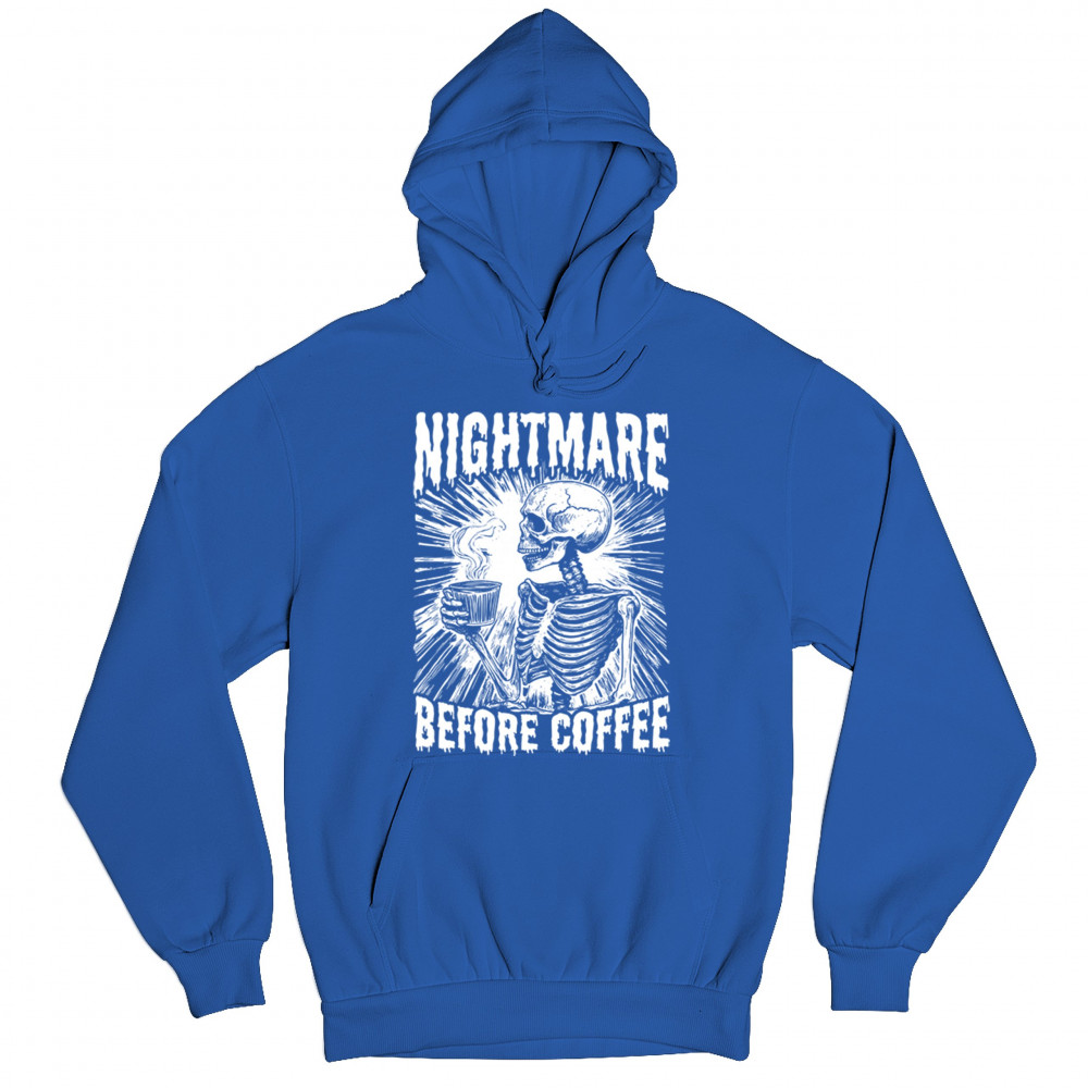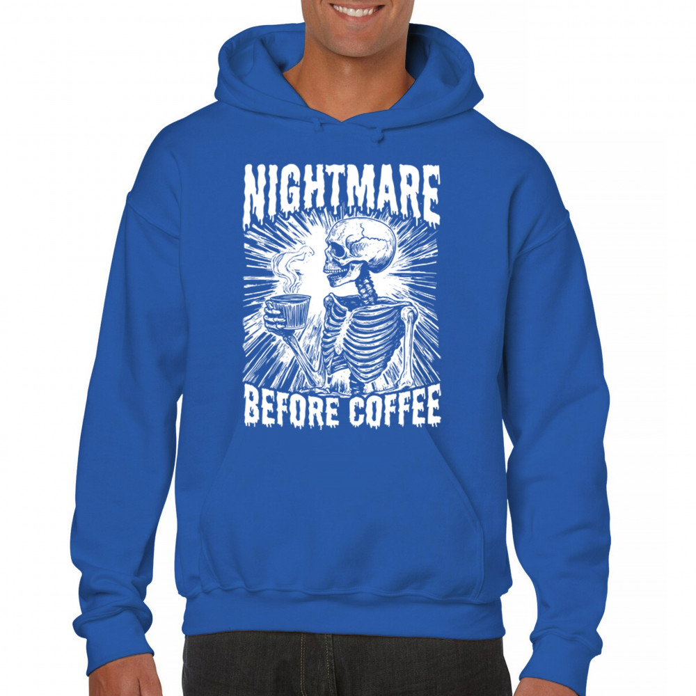 Show off your love for coffee with this quirky "Nightmare Before Coffee" skeleton design, blending humor and gothic style for caffeine lovers.
