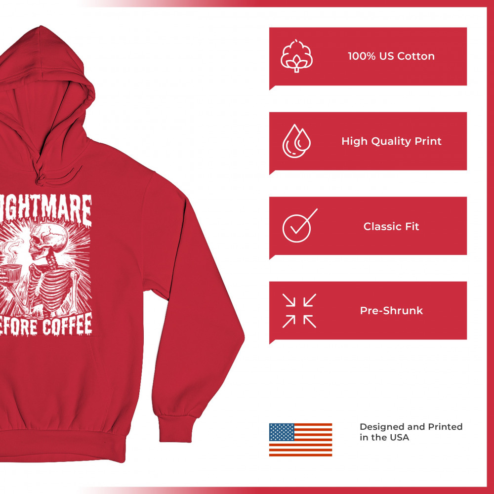 Show off your love for coffee with this quirky "Nightmare Before Coffee" skeleton design, blending humor and gothic style for caffeine lovers.