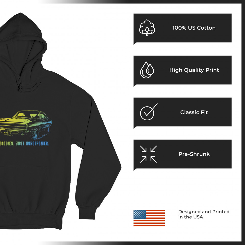 Bold 1970 muscle car design with gradient pop. No apologies, just horsepower—perfect for car shows, gearheads, and performance lovers.