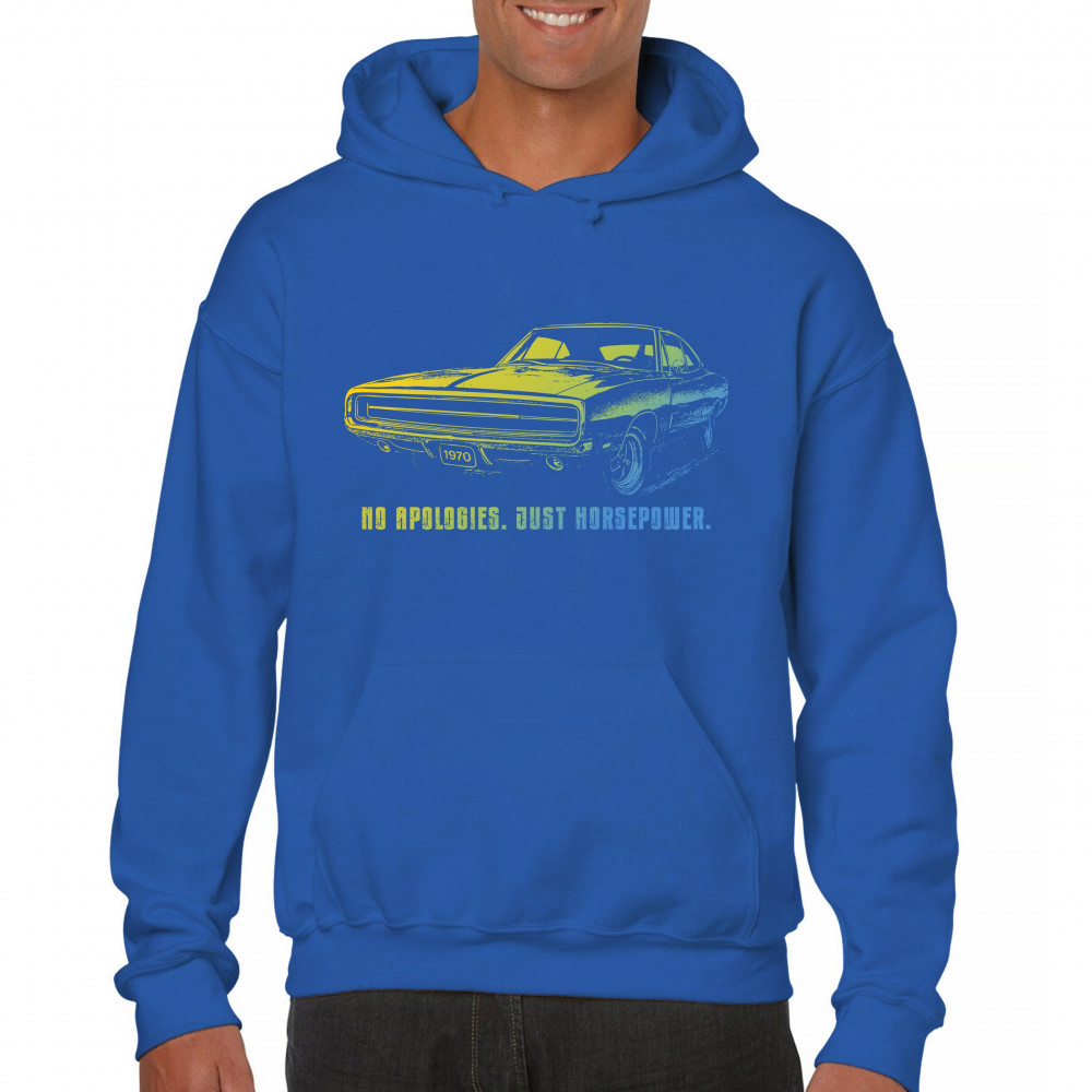Bold 1970 muscle car design with gradient pop. No apologies, just horsepower—perfect for car shows, gearheads, and performance lovers.
