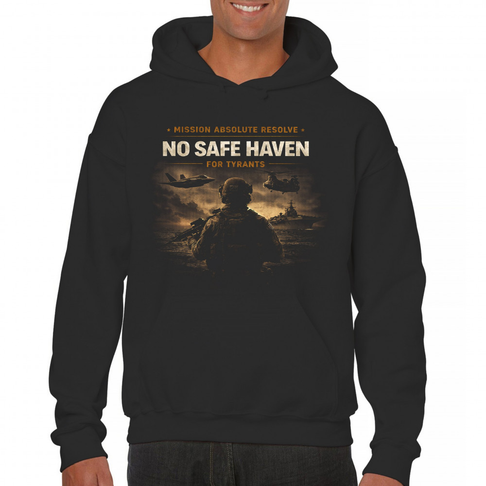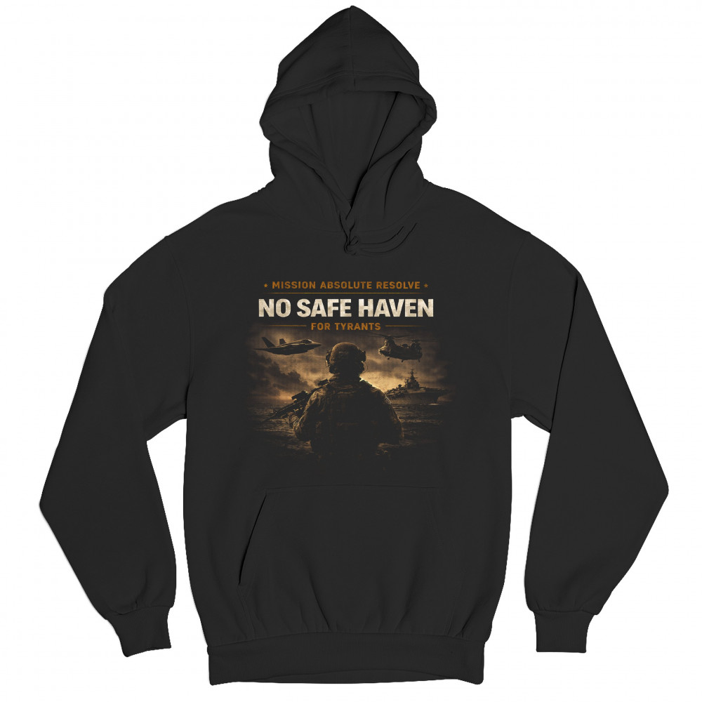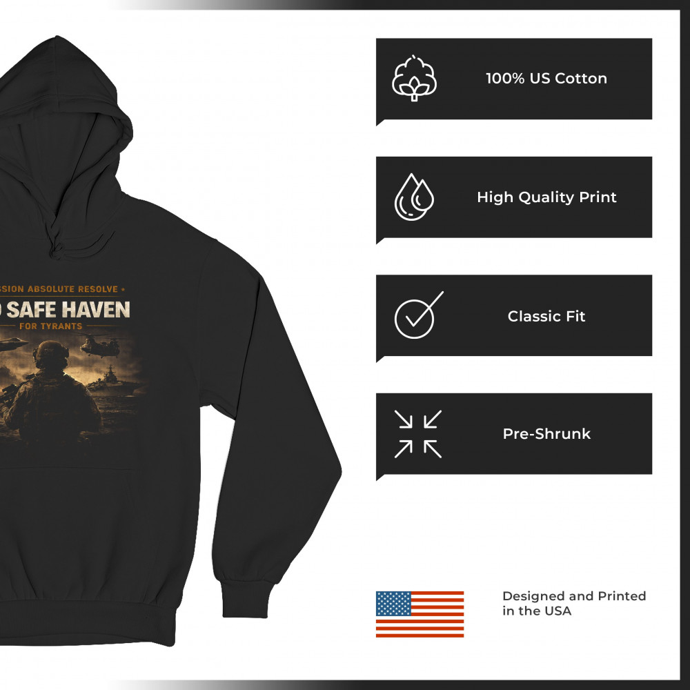 NO SAFE HAVEN FOR TYRANTS unisex hoodie absolute resolve military force black